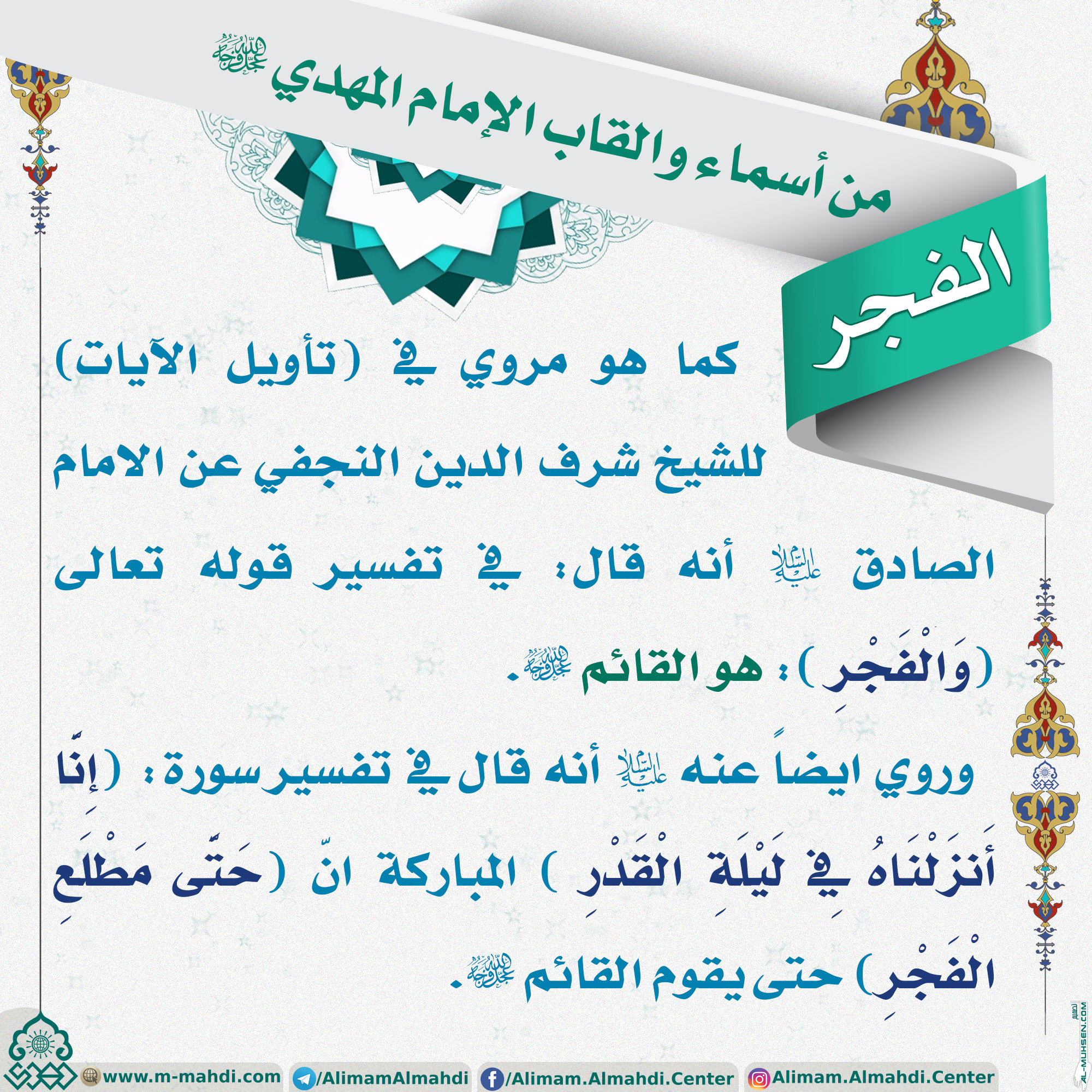 أسماء وألقاب الإمام المهدي (عجّل الله فرجه) - ١٥