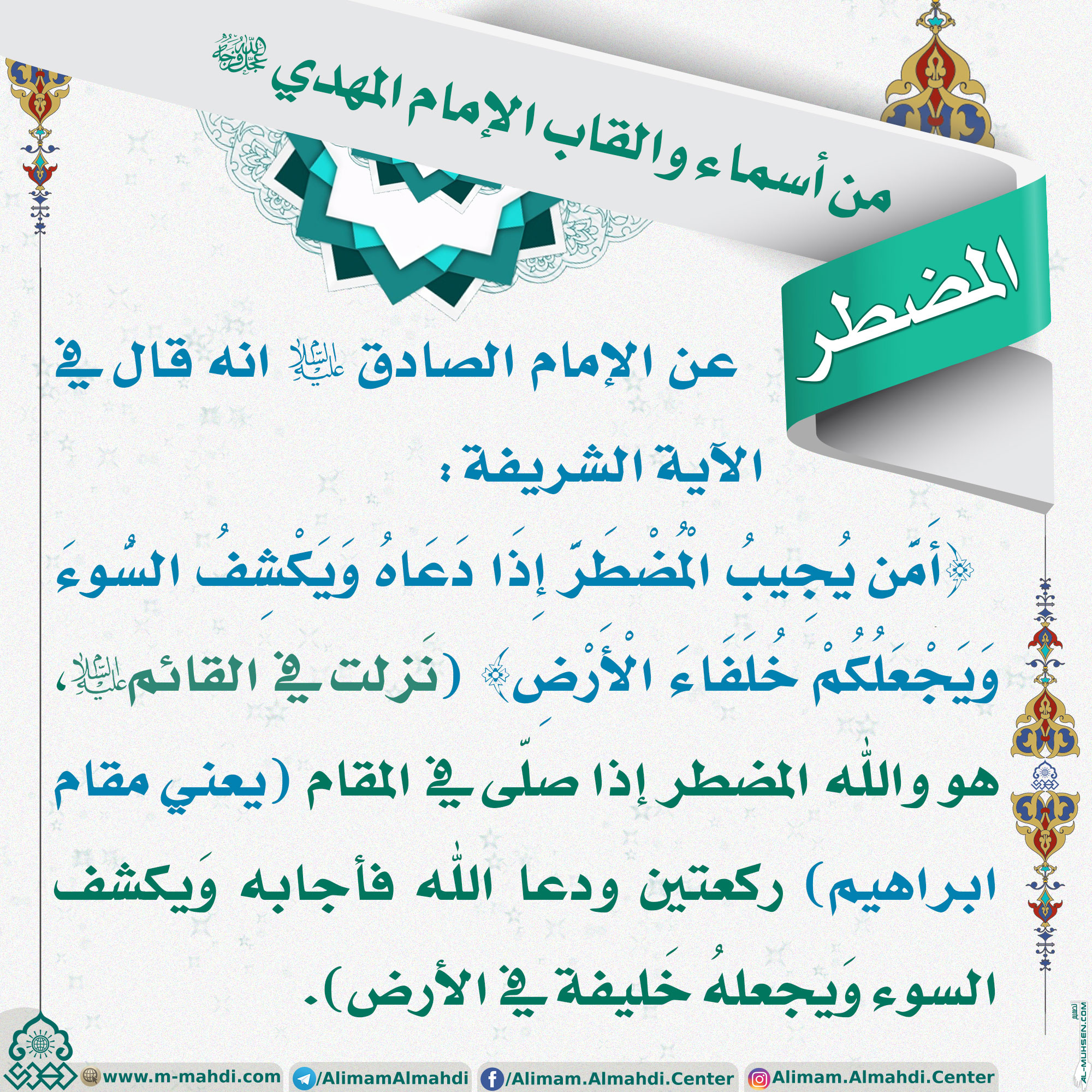 أسماء وألقاب الإمام المهدي (عجّل الله فرجه) - ٢١