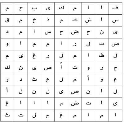 اشطب على كلمات هذين البيتين واستخرج كلمة السرّ ذات الـ (٦) حروف وهي شعار جيش الخراساني الذي كان يردّده المسلمون في معركة بدر.