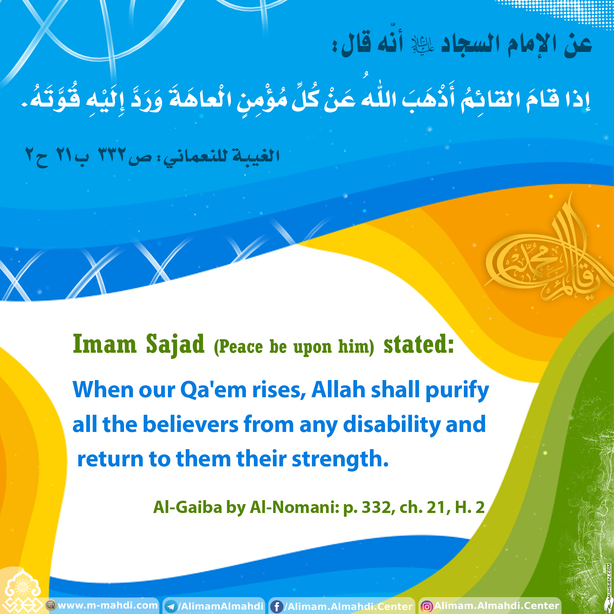اَللّـهُمَّ كُنْ لِوَلِيِّكَ الْحُجَّةِ بْنِ الْحَسَنِ صَلَواتُكَ عَلَيْهِ وَعَلى آبائِه في هذِهِ السَّاعَةِ وَفي كُلِّ ساعَة وَلِيّاً وَحافِظاً وَقائِداً وَناصِراً وَدَليلاً وَعَيْنا حَتّى تُسْكِنَهُ اَرْضَكَ طَوْعاً وَتُمَتِّعَهُ فيها طَويلاً