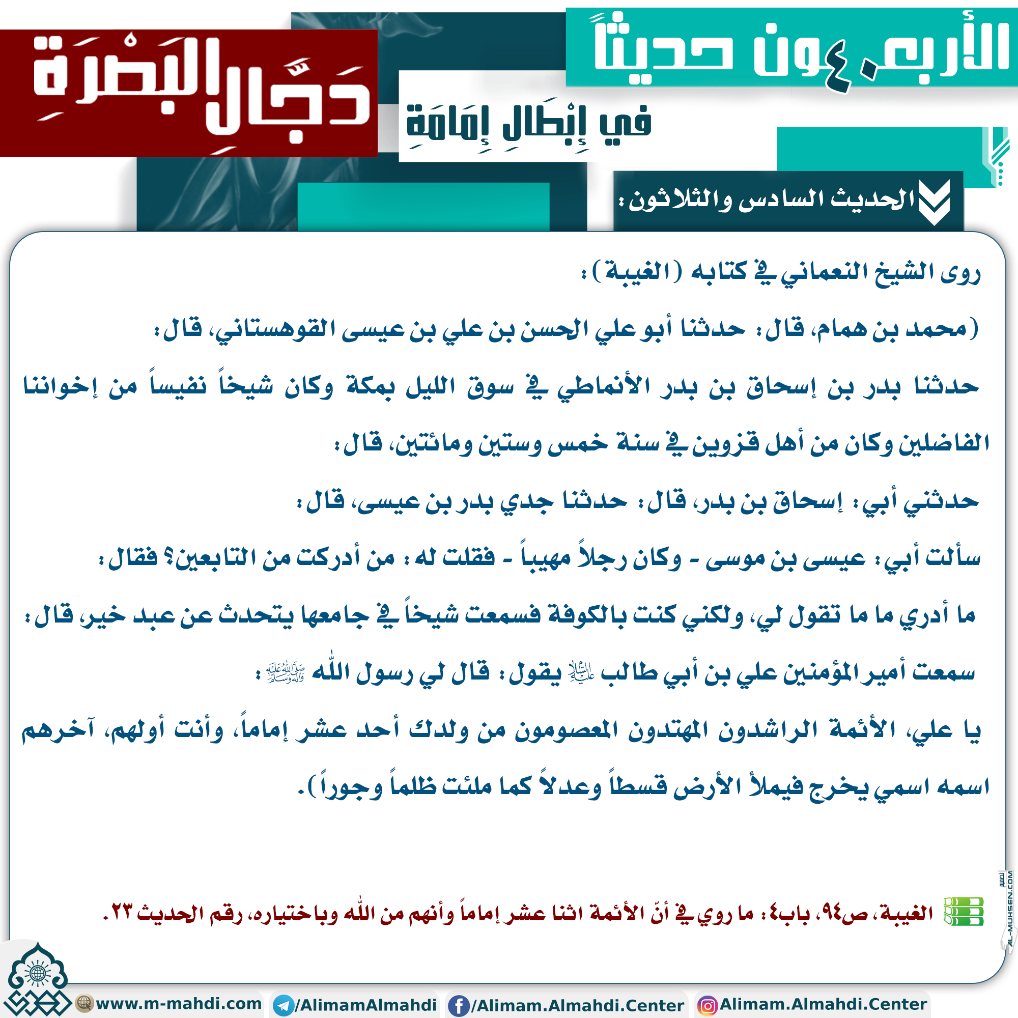 الأربعون حديثاً في إبطال إمامة دجال البصرة