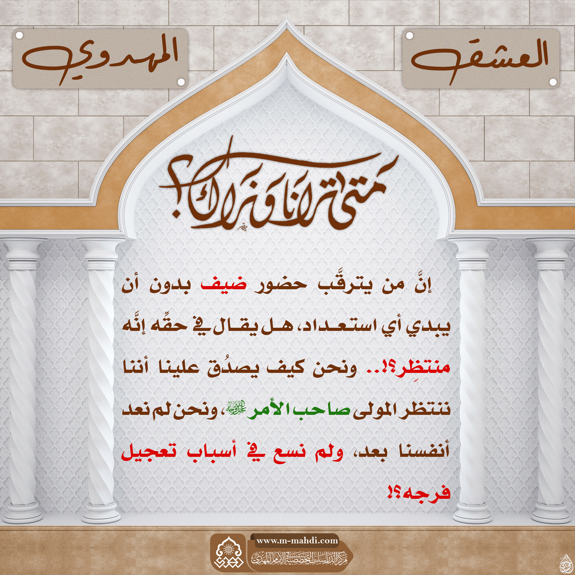 اَللّـهُمَّ كُنْ لِوَلِيِّكَ الْحُجَّةِ بْنِ الْحَسَنِ صَلَواتُكَ عَلَيْهِ وَعَلى آبائِه في هذِهِ السَّاعَةِ وَفي كُلِّ ساعَة وَلِيّاً وَحافِظاً وَقائِداً وَناصِراً وَدَليلاً وَعَيْنا حَتّى تُسْكِنَهُ اَرْضَكَ طَوْعاً وَتُمَتِّعَهُ فيها طَويلاً