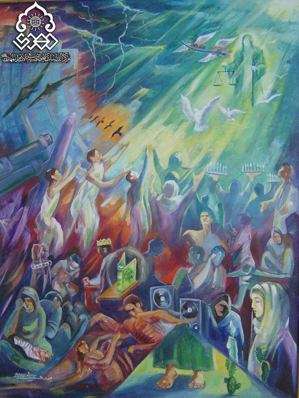 لوحة للفنان بدري جياد/في مشاركته في معرض الفنون التشكيلية في الامام المهدي عليه السلام في النجف الاشرف الذي اقامه المركز