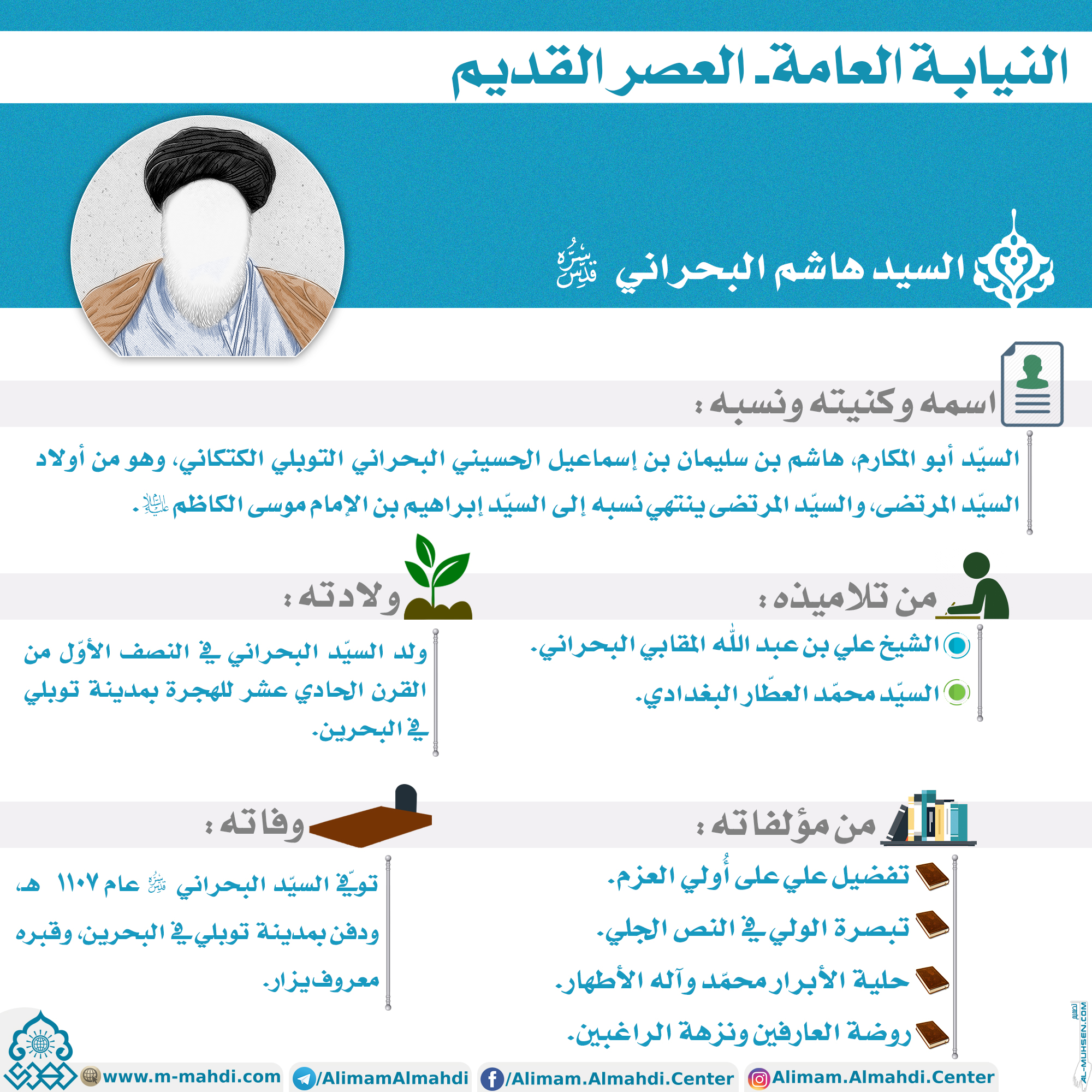 ?السيد هاشم البحراني (قدس سره) ?اسمه وكنيته ونسبه: السيّد أبو المكارم، هاشم بن سليمان بن إسماعيل الحسيني البحراني التوبلي الكتكاني، وهو من أولاد السيّد المرتضى، والسيّد المرتضى ينتهي نسبه إلى السيّد إبراهيم بن الإمام موسى الكاظم (عليه السلام). ?ولادته: ولد السيّد البحراني في النصف…