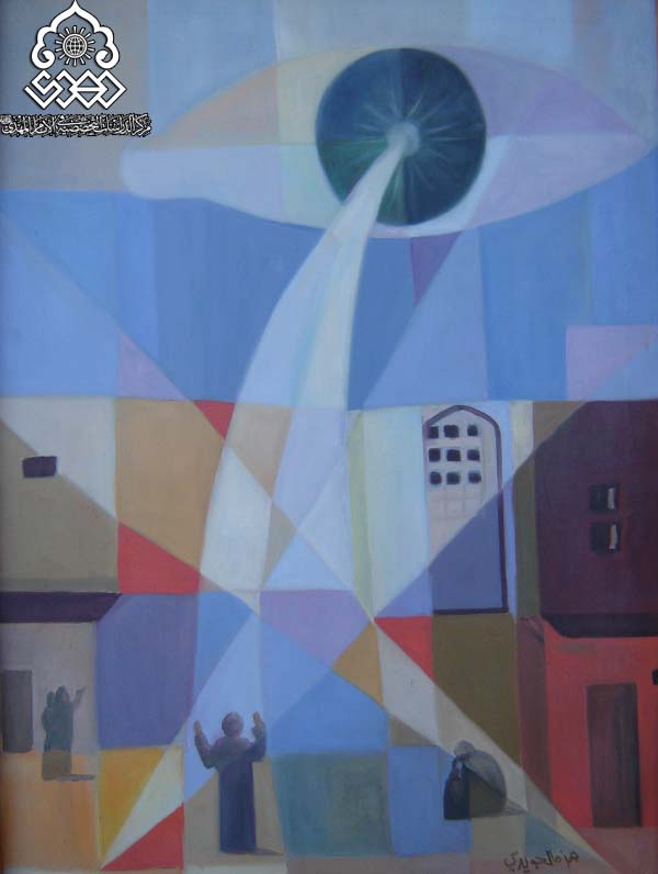 لوحة للفنان حمزة العويدي/ في مشاركته في معرض الفنون التشكيلية في الامام المهدي عليه السلام في النجف الاشرف الذي اقامه المركز