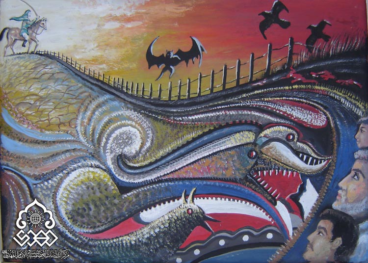 لوحة للفنان رؤوف الطويل/في مشاركته في معرض الفنون التشكيلية في الامام المهدي عليه السلام في النجف الاشرف الذي اقامه المركز