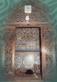 ونقش أيضاً في الخشب الساج داخل الصفة في دائر الحائط: