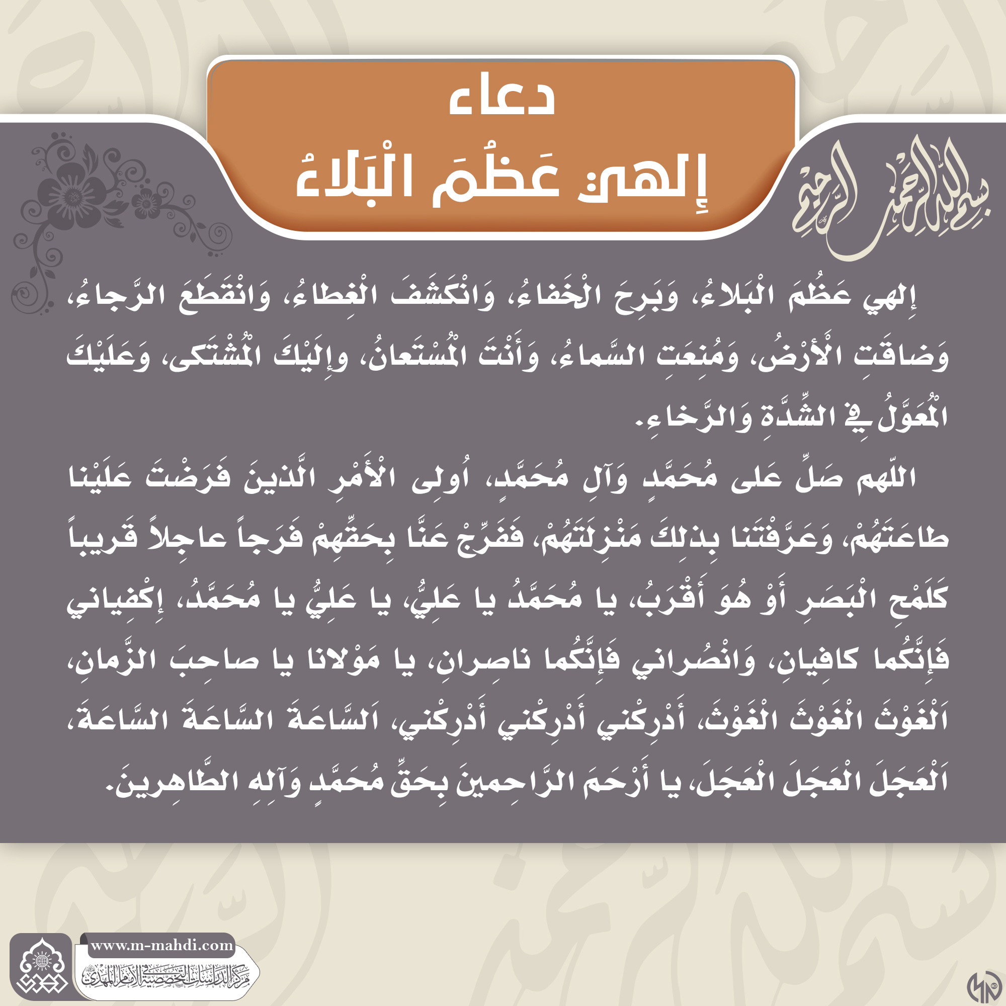 دعاء ألهي عظم البلاء- ٤