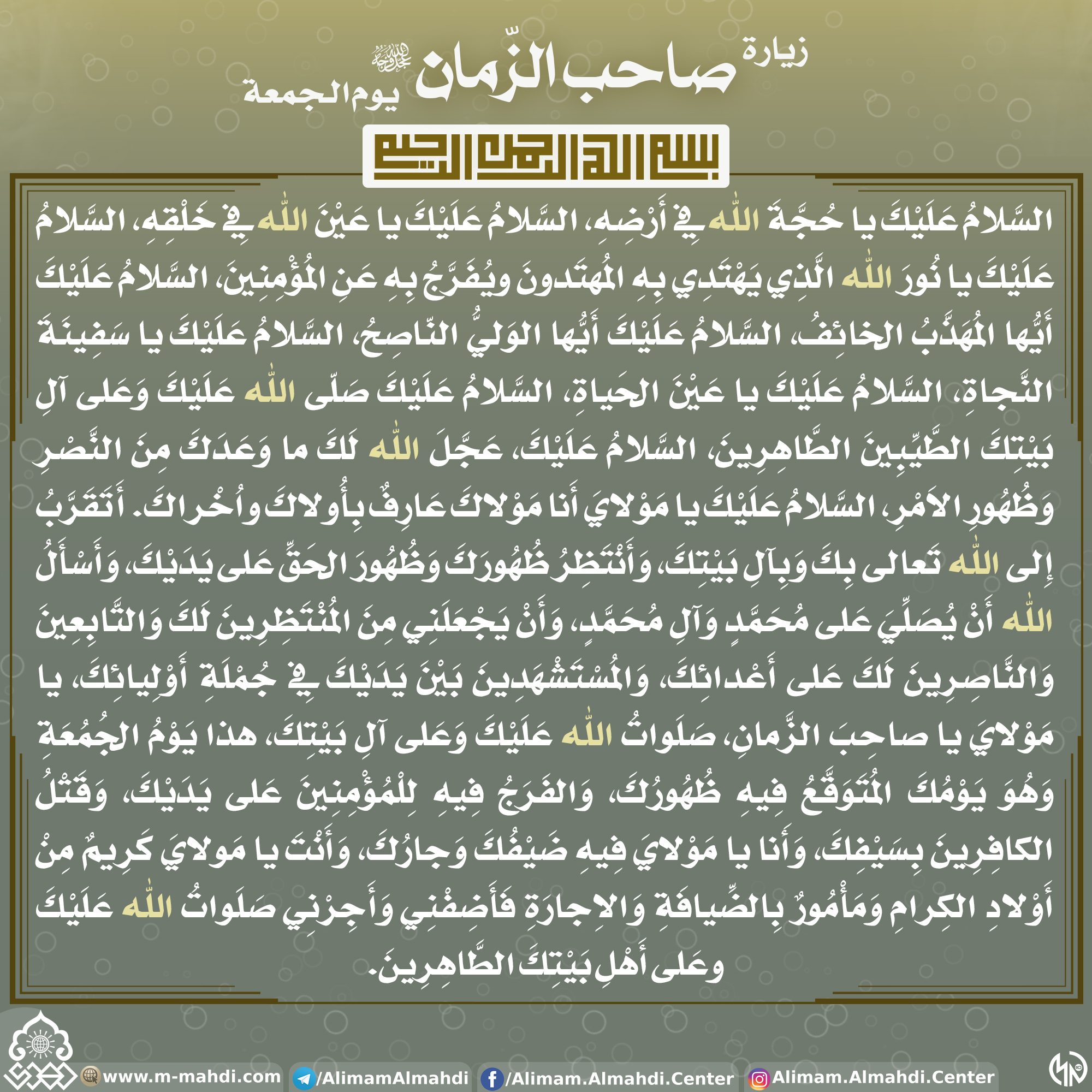 زيارة الامام المهدي عليه السلام في يوم الجمعة
