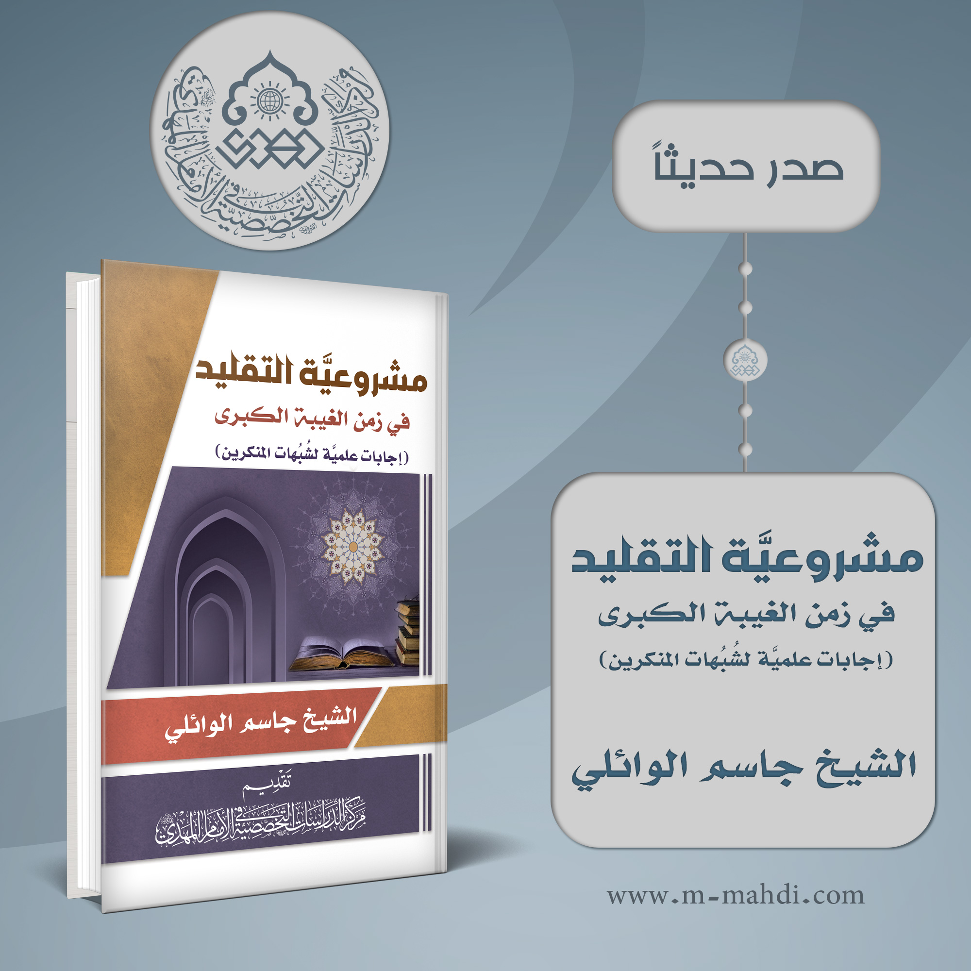 صدر حديثاً كتاب مشروعيَّة التقليد في زمن الغيبة الكبرى (إجابات علميَّة لشُبُهات المنكرين) تأليف الشيخ جاسم الوائلي، ومن تقديم مركز الدراسات التخصصية في الإمام المهدي (عجّل الله فرجه).