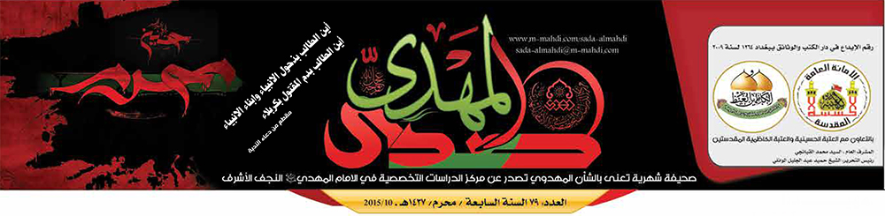 تم صدور صحيفة صدى المهدي عليه السلام العدد ٧٩ السنة السابعة/ محرم الحرام/ ١٤٣٧هـ - ١٠/ ٢٠١٥م