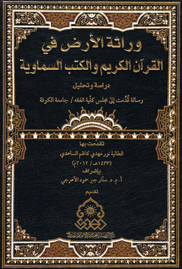 اصدر مركز الدراسات التخصصية في الامام المهدي عليه السلام كتاباً بعنوان: وراثة الأرض في القرآن الكريم والكتب السماوية دراسة وتحليل رسالة قُدِّمت الى مجلس كلّية الفقه/ جامعة الكوفة، تقدّمت بها الطالبة نور مهدي كاظم الساعدي لسنة (١٤٣٣هـ/ ٢٠١٢م) بإشراف أ. م.د ستّار جبر حمود الأعرجي.