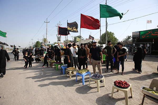 كرم العراقيين وهم يقدمون مختلف انواع الخدمات الانسانية التي تساعد الزائرين على مواصلة مسيرهم نحو قبلة الاحرار كربلاء.
