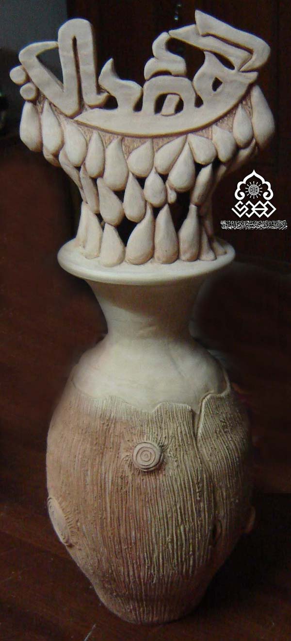 صورة لمجسمة للفنان حسنين جبار/في مشاركته في معرض الفنون التشكيلية في الامام المهدي عليه السلام في النجف الاشرف الذي اقامه المركز