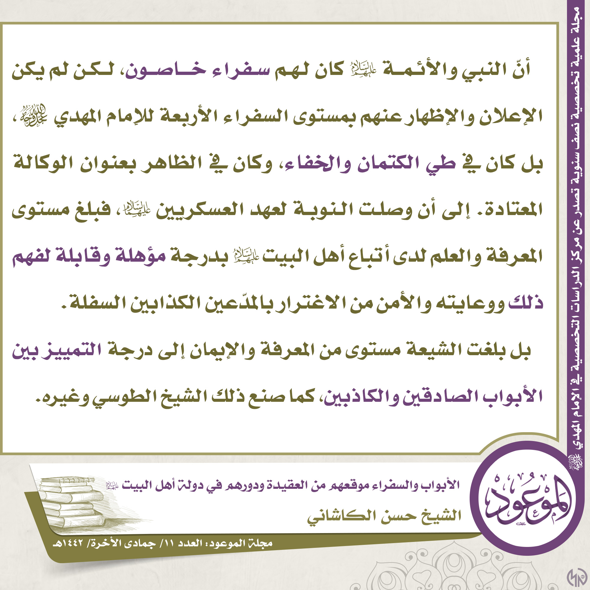 ?العدد ١١/ جمادى الآخرة/ ١٤٤٢ هـ ? مقتطف من مقال: الأبواب والسفراء موقعهم من العقيدة ودورهم في دولة أهل البيت (عليهم السلام) ✍? الكاتب: الشيخ حسن الكاشاني ? للاطلاع على المقال من خلال حقل التحميلات في الأسفل ?