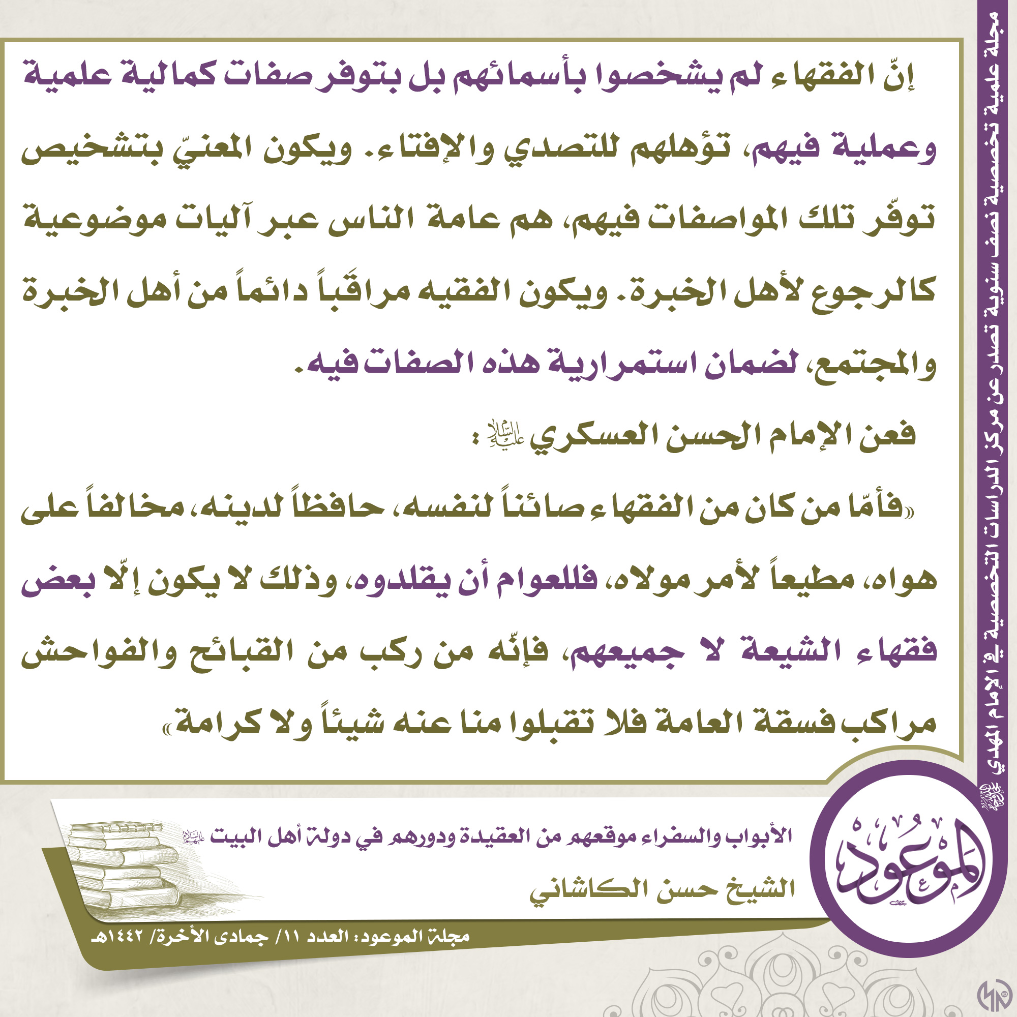 ?العدد ١١/ جمادى الآخرة/ ١٤٤٢ هـ ? مقتطف من مقال: الأبواب والسفراء موقعهم من العقيدة ودورهم في دولة أهل البيت (عليهم السلام) ✍? الكاتب: الشيخ حسن الكاشاني ? للاطلاع على المقال من خلال حقل التحميلات في الأسفل ?