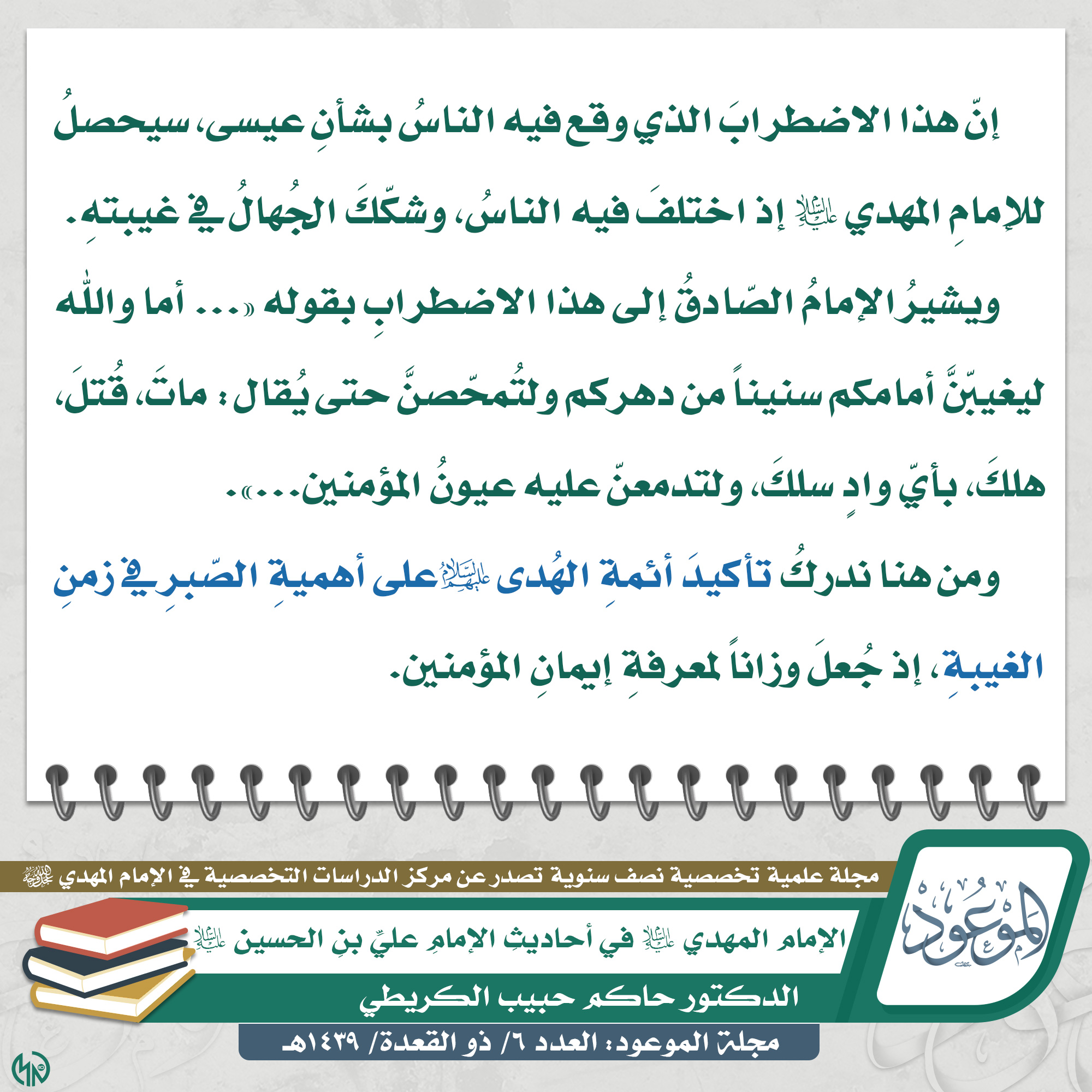 ?العدد ٦/ ذو القعدة/ ١٤٣٩ هـ ? مقتطف من مقال: الإمام المهدي (عليه السلام) في أحاديثِ الإمامِ عليِّ بنِ الحسين (عليه السلام) ✍? الكاتب: الدكتور حاكم حبيب الكريطي ? للاطلاع على المقال من خلال حقل التحميلات في الأسفل ?