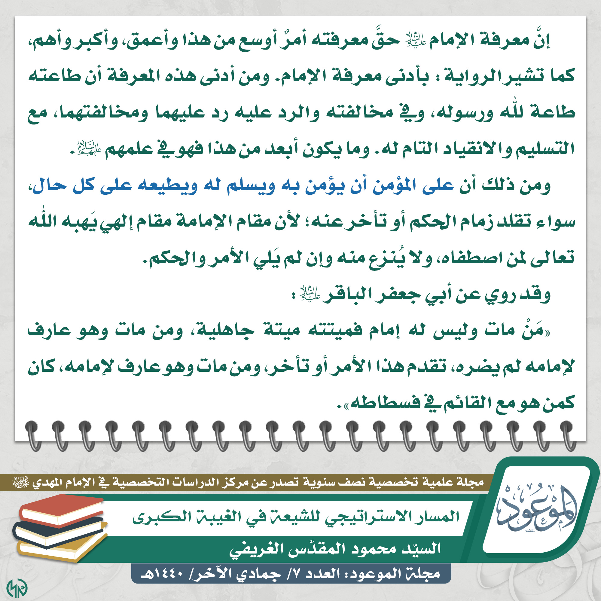 ?العدد ٧/ جمادي الآخر/ ١٤٤٠ هـ ? مقتطف من مقال: المسار الاستراتيجي للشيعة في الغيبة الكبرى ✍? الكاتب: السيّد محمود المقدَّس الغريفي ? للاطلاع على المقال من خلال حقل التحميلات في الأسفل ?