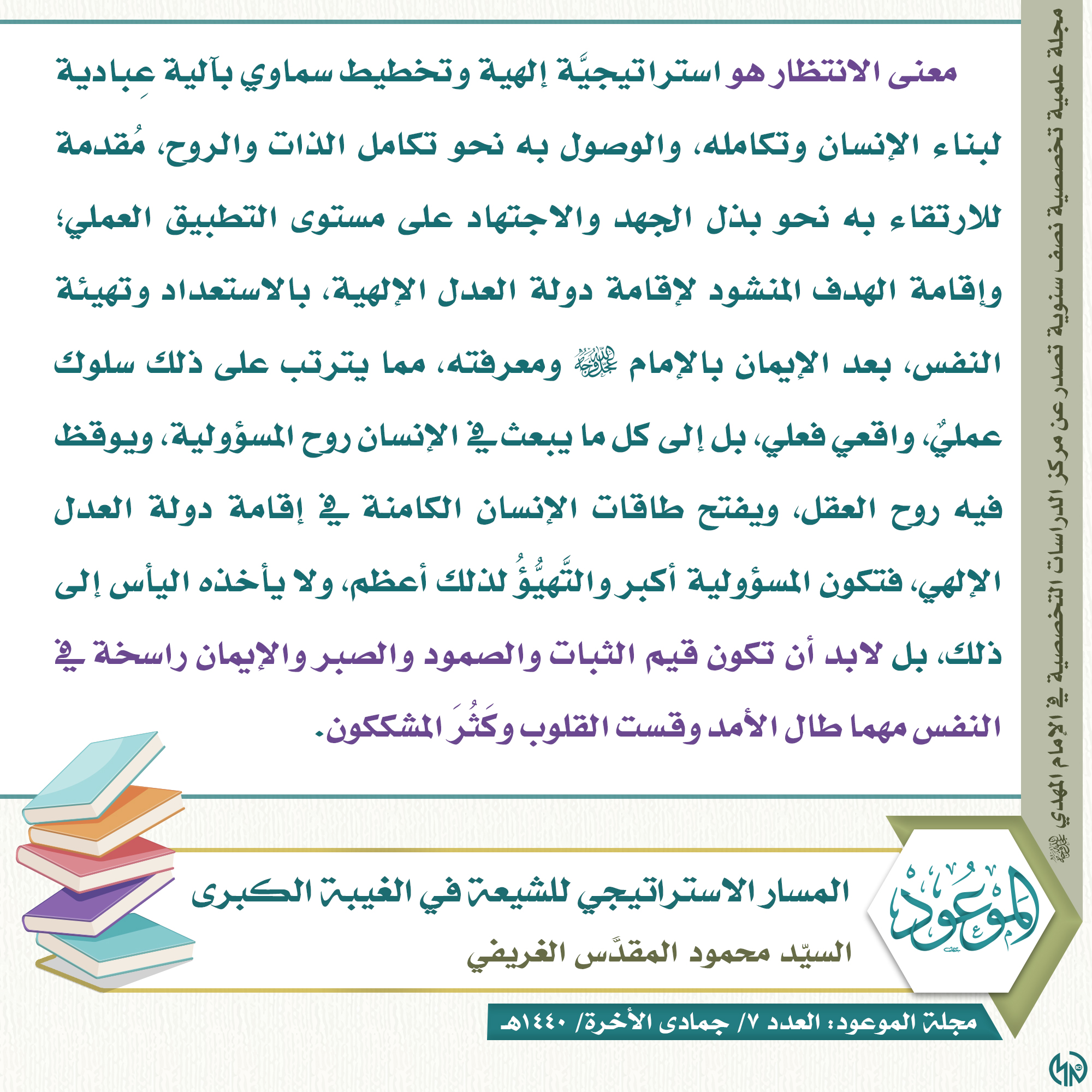 ?العدد ٧/ جمادي الآخر/ ١٤٤٠ هـ ? مقتطف من مقال: المسار الاستراتيجي للشيعة في الغيبة الكبرى ✍? الكاتب: السيّد محمود المقدَّس الغريفي ? للاطلاع على المقال من خلال حقل التحميلات في الأسفل ?