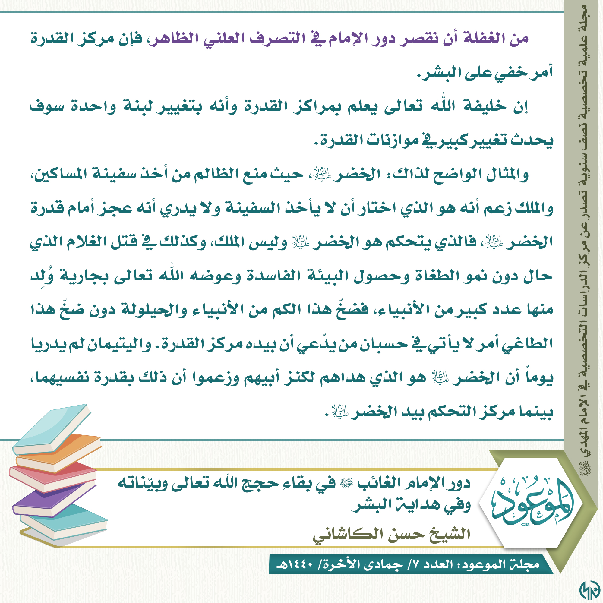 ?العدد ٧/ جمادي الآخر/ ١٤٤٠ هـ ? مقتطف من مقال: دور الإمام الغائب (عجّل الله فرجه) في بقاء حجج الله تعالى وبيّناته وفي هداية البشر ✍? الكاتب: الشيخ حسن الكاشاني ? للاطلاع على المقال من خلال حقل التحميلات في الأسفل ?