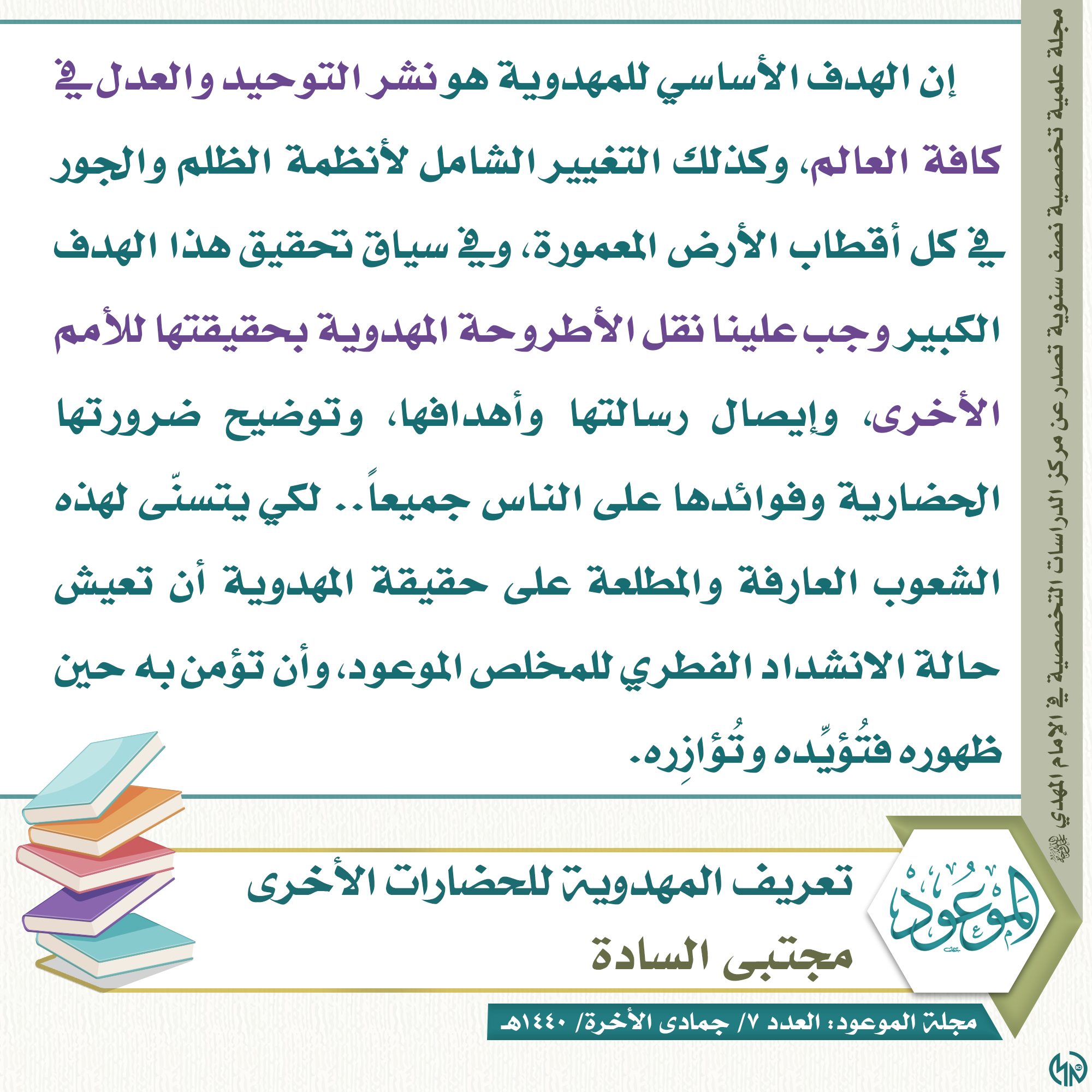 ?العدد ٧/ جمادي الآخر/ ١٤٤٠ هـ ? مقتطف من مقال: تعريف المهدوية للحضارات الأخرى ✍? الكاتب: مجتبى السادة ? للاطلاع على المقال من خلال حقل التحميلات في الأسفل ?