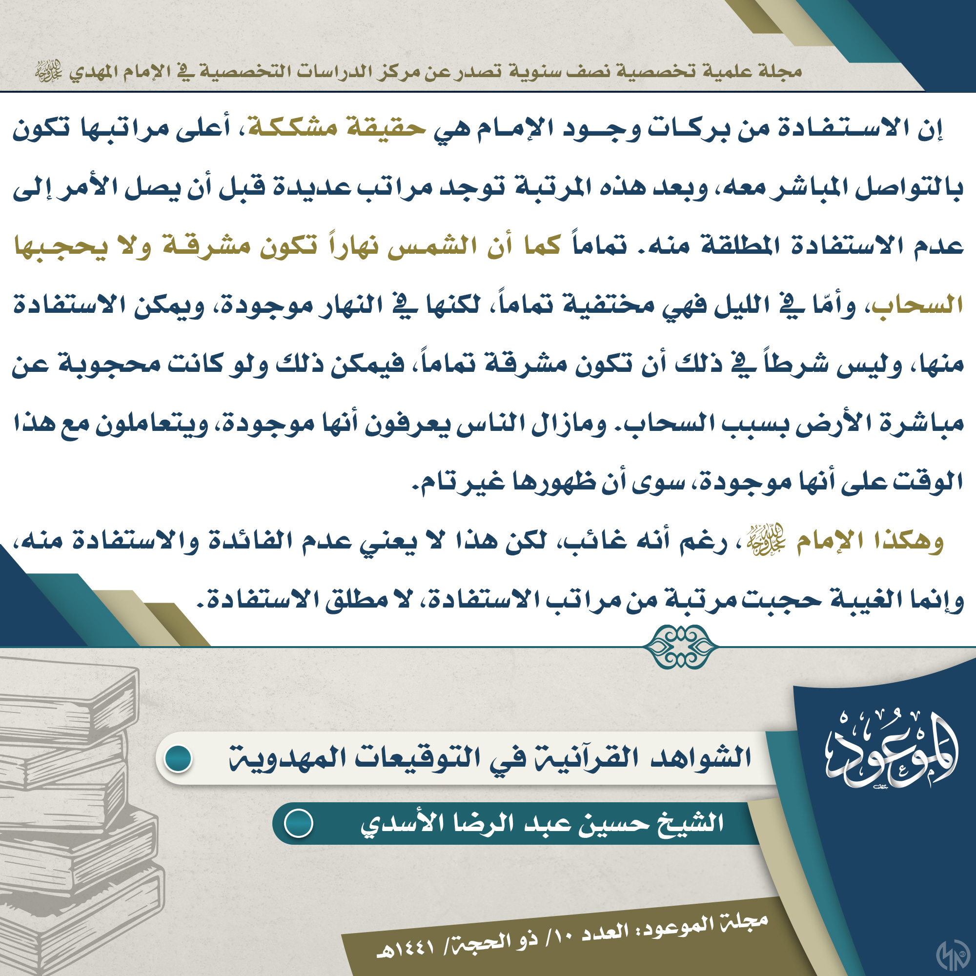 ?العدد ١٠/ ذو الحجة/ ١٤٤١ هـ ? مقتطف من مقال: الشواهد القرآنية في التوقيعات المهدوية ✍? الكاتب: الشيخ حسين عبد الرضا الأسدي ? للاطلاع على المقال من خلال حقل التحميلات في الأسفل ?