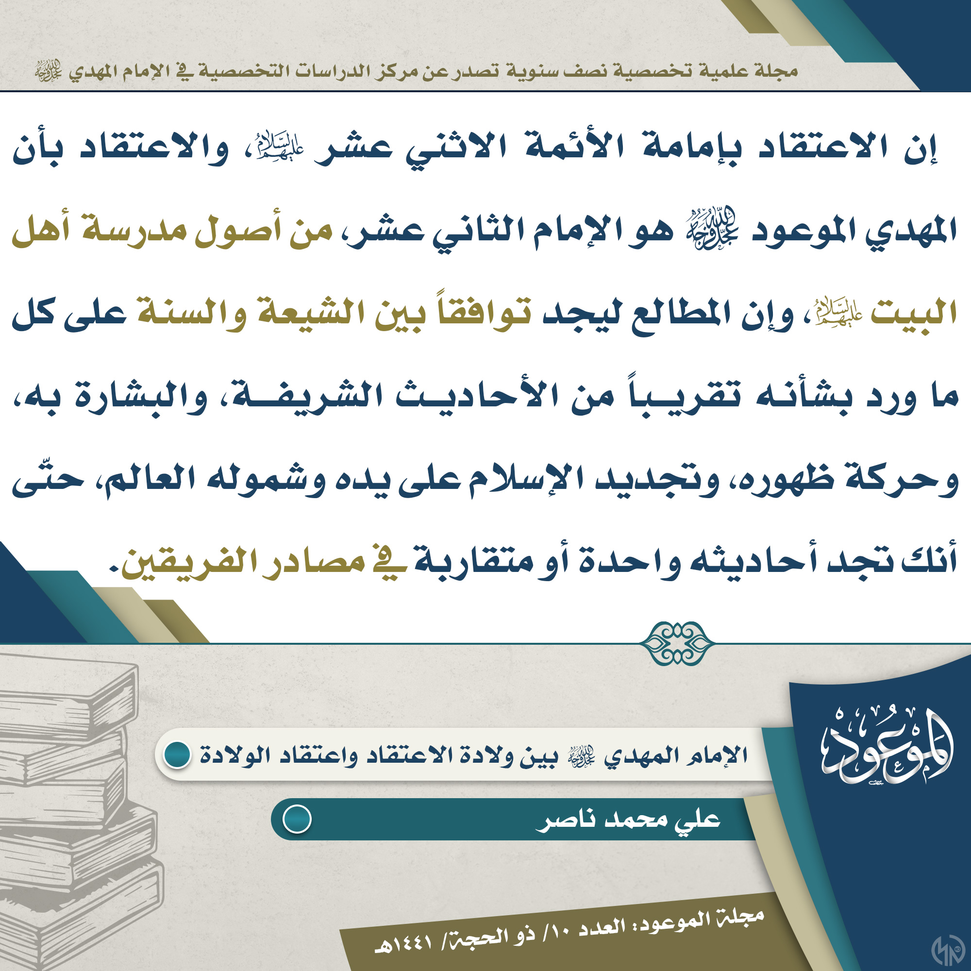 ?العدد ١٠/ ذو الحجة/ ١٤٤١ هـ ? مقتطف من مقال: الإمام المهدي (عجَّل الله فرجه) بين ولادة الاعتقاد واعتقاد الولادة ✍? الكاتب: علي محمد ناصر ? للاطلاع على المقال من خلال حقل التحميلات في الأسفل ?