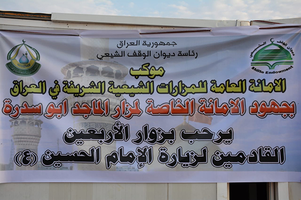 بجهودٍ متواصلةٍ وعطاءٍ كبيرٍ ومتابعةٍ حثيثةٍ من قبلِ نائب الأمين العام للمزاراتِ سماحة الشيخ خليفة الجوهر (دام عزه)، يَشهد مَوكب الأمانة العامّة للمزاراتِ الشيعيّةِ الشَّريفة وبالتعاونِ مع الأمانةِ الخاصّة لمزارِ المَاجد أبو سدرة (رضي الله عنهُ) / في ميسان تقديم الخدمات كافةً من مأكلٍ ومشرب ومبيت وخدمات صحية ، إضافةً إلى الإجابة عن الأسئلة الدينيّة الشرعية لقاصدي أبي الأحرار الإمام الحُسين (علية السَّلام) في منفذِ الشيب الحدودي مع الجمهورية الإسلامية إيران.