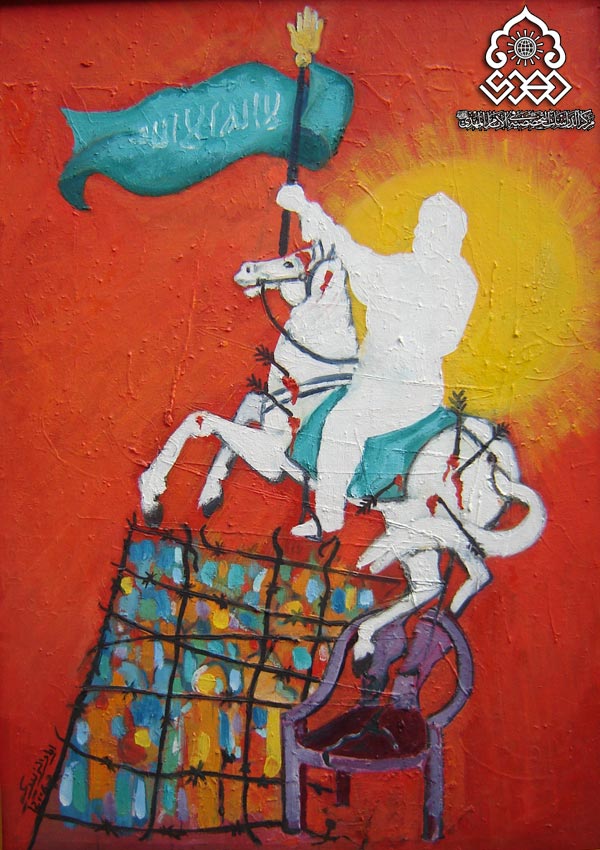 لوحة للفنان اياد الزبيدي/في مشاركته في معرض الفنون التشكيلية في الامام المهدي عليه السلام في النجف الاشرف الذي اقامه المركز