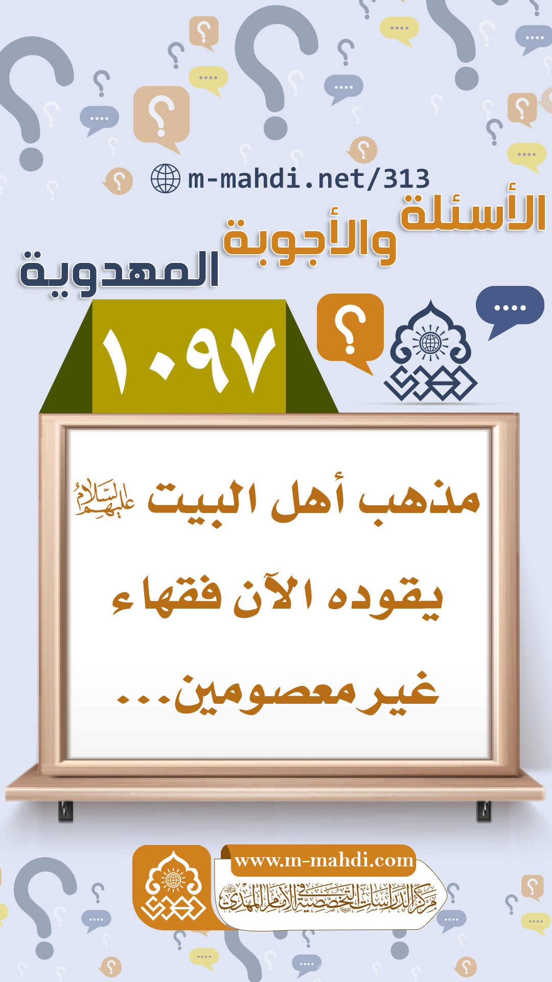 (١٠٩٧) مذهب أهل البيت (عليهم السلام) يقوده الآن فقهاء غير معصومين...