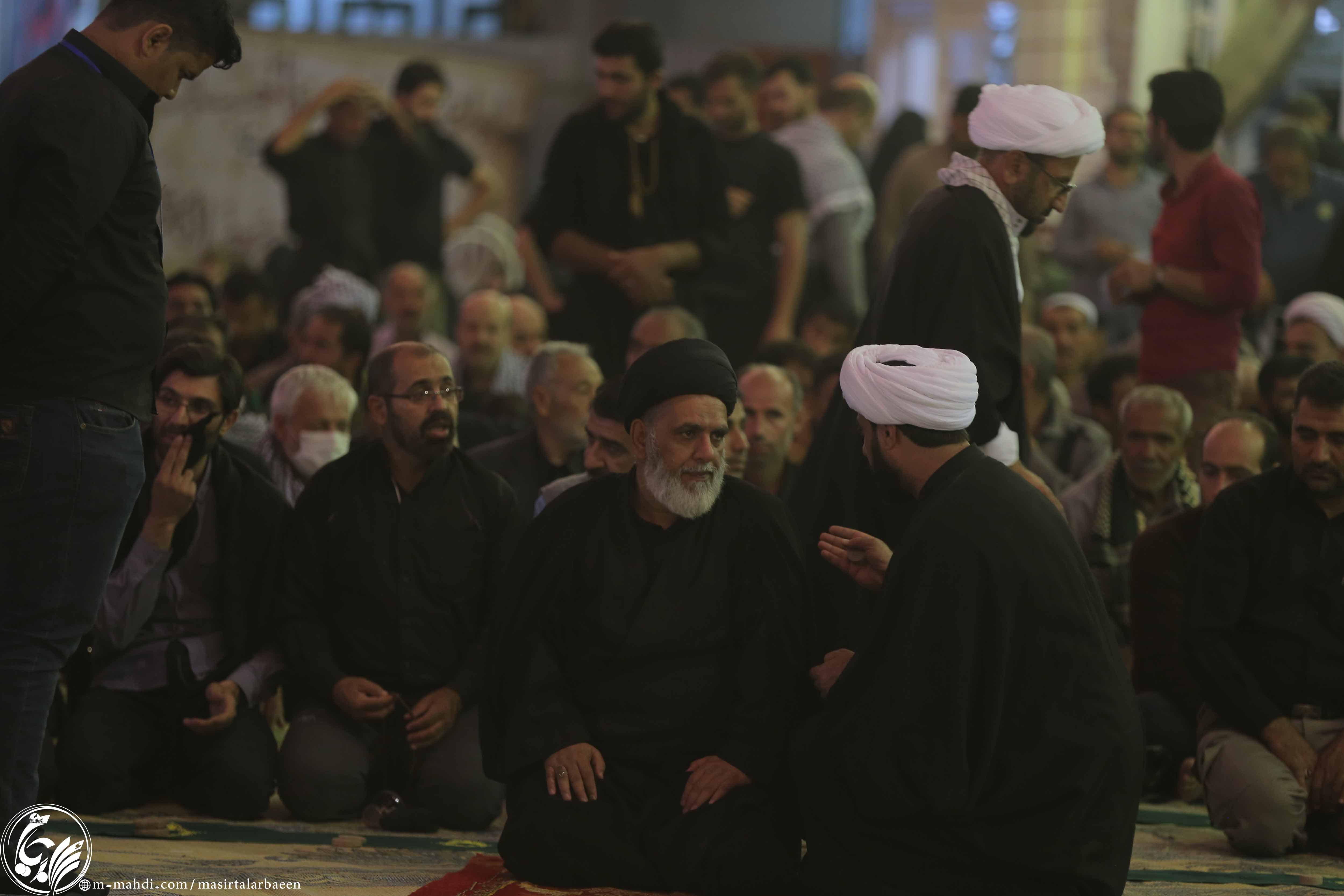 آية الله السيد أحمد الاشكوري وهو يأم المصلين على طريق يا حسين سنة: ١٤٣٨هـ - ٢٠١٦ م