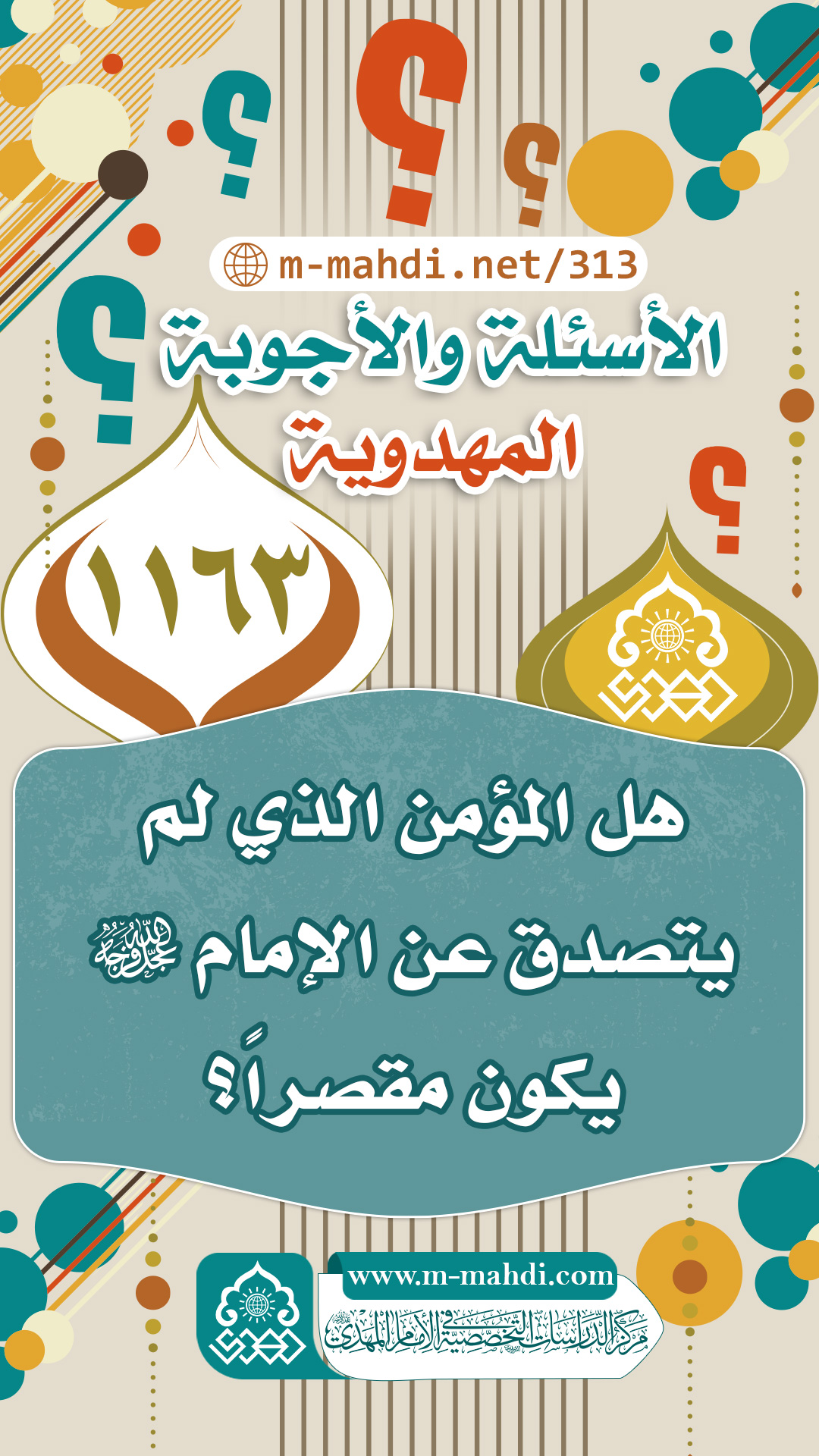 (١١٦٣) هل المؤمن الذي لم يتصدق عن الإمام (عجّل الله فرجه) يكون مقصراً؟