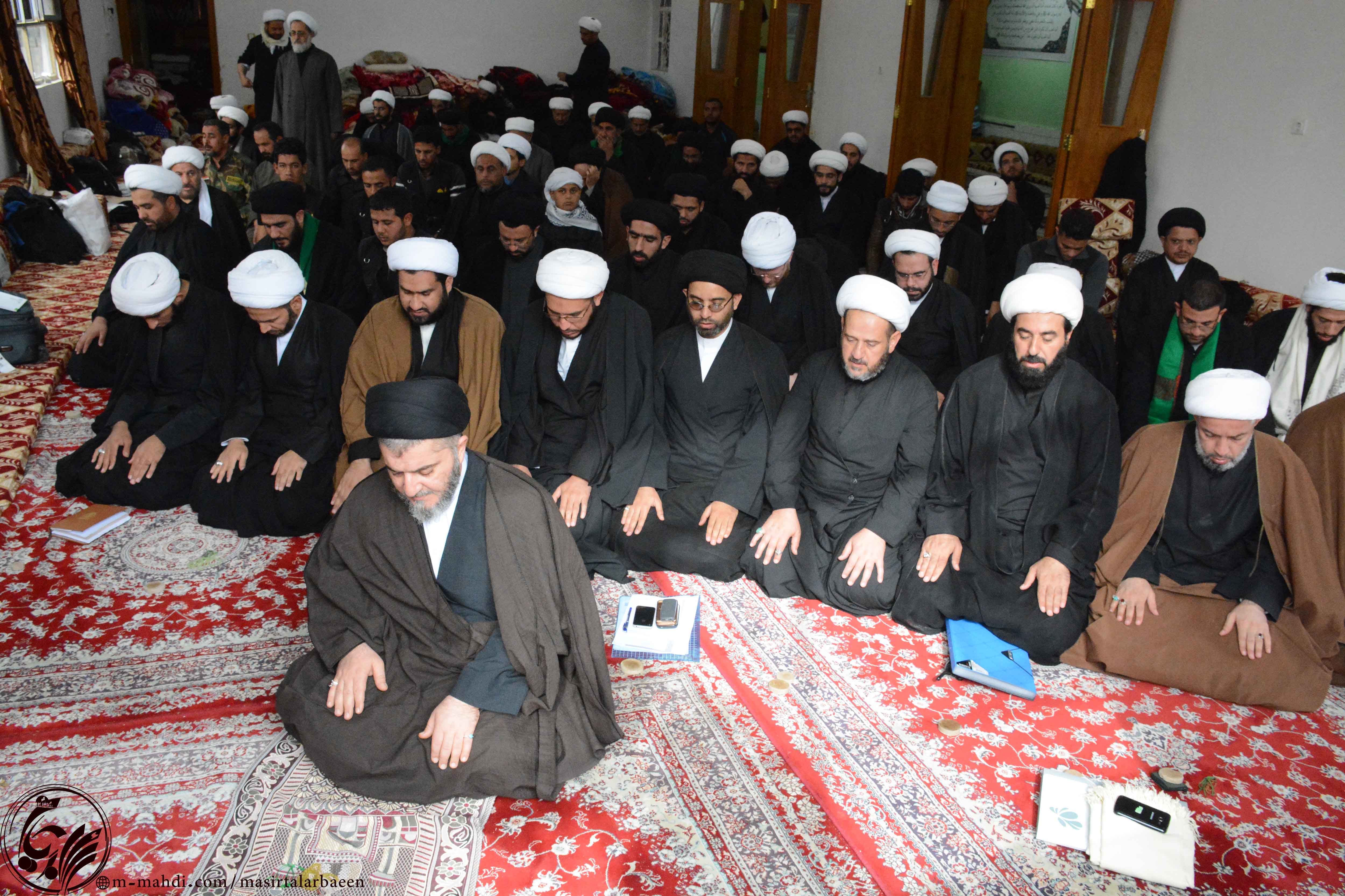 (١١٧) آية الله السيد جعفر الحكيم يؤدي الصلاة جماعة في المقر المركزي للمشروع التبليغي للحوزة العلمية في زيارة الأربعين