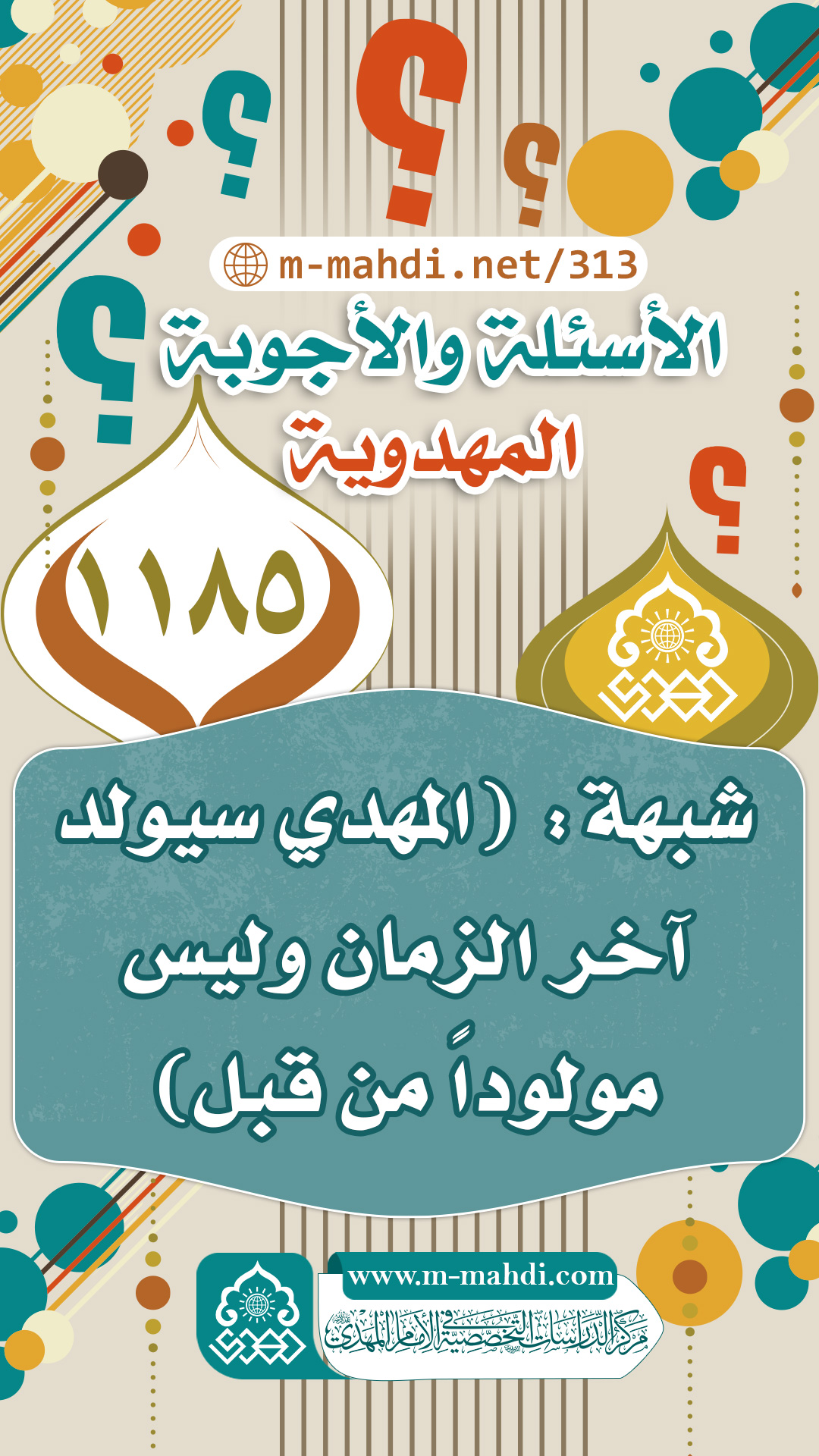 (١١٨٥) شبهة: (المهدي سيولد آخر الزمان وليس مولوداً من قبل)