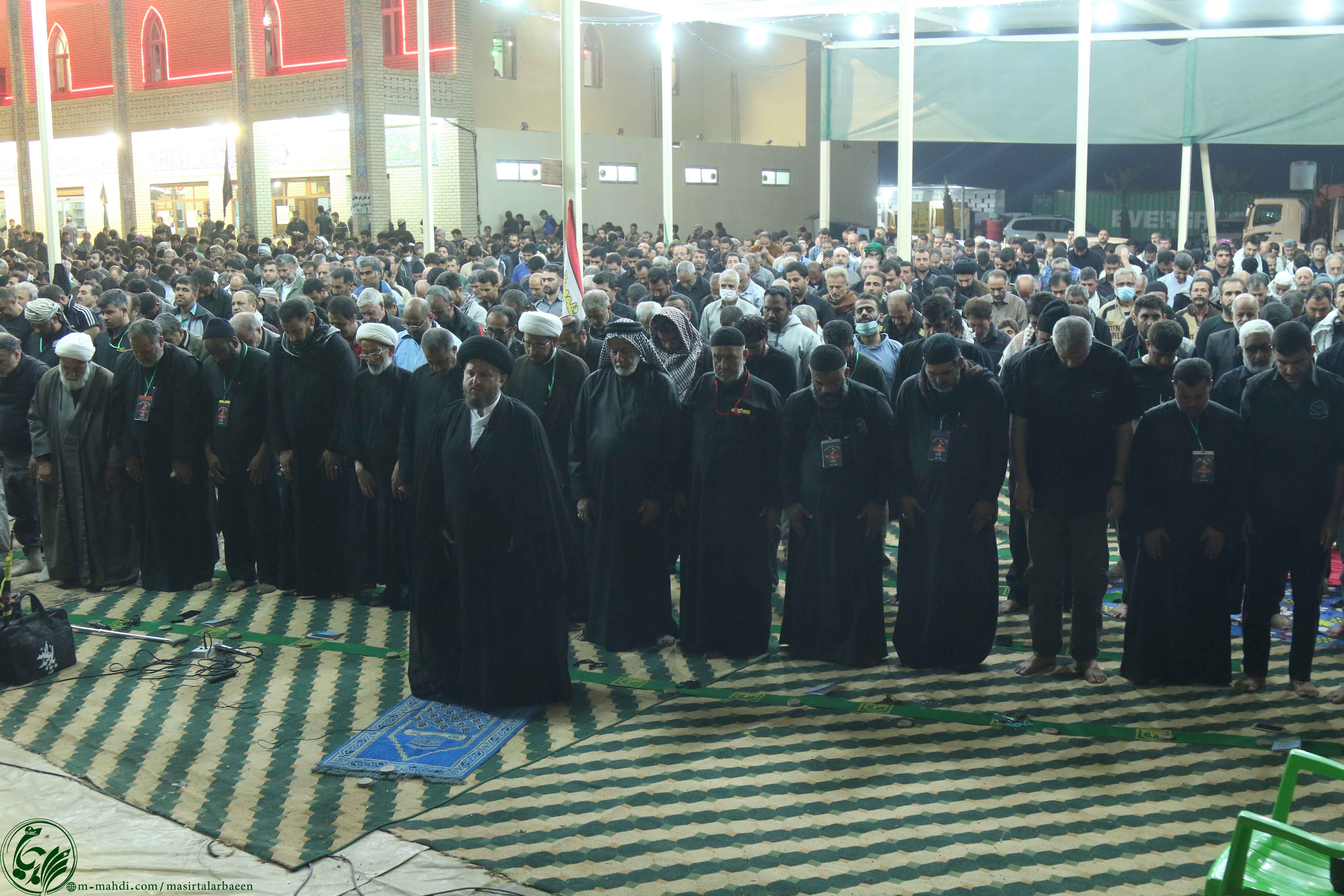 آية الله السيد حسين الحكيم يؤم المصلين في طريق يا حسين سنة: ١٤٣٨هـ - ٢٠١٦ م