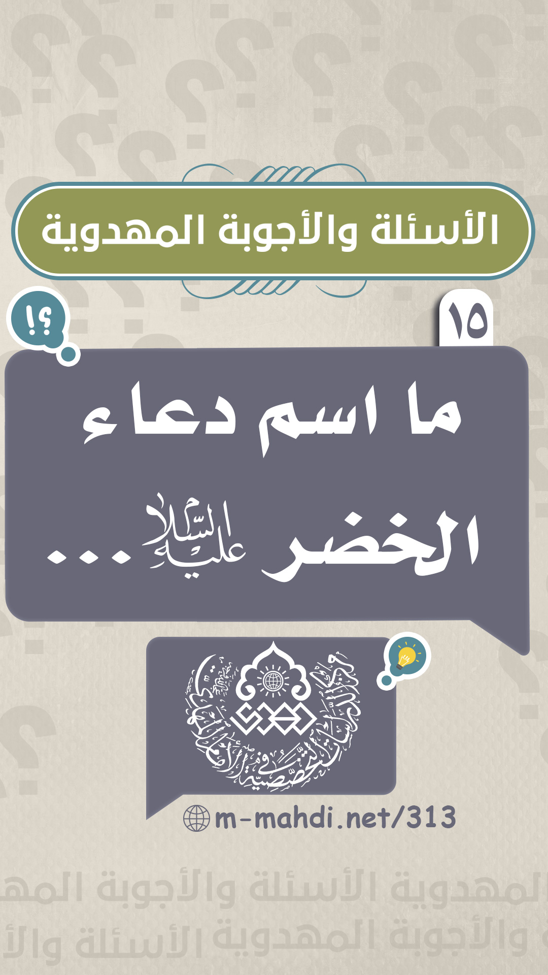 (١٥) ما اسم دعاء الخضر (عليه السلام)...