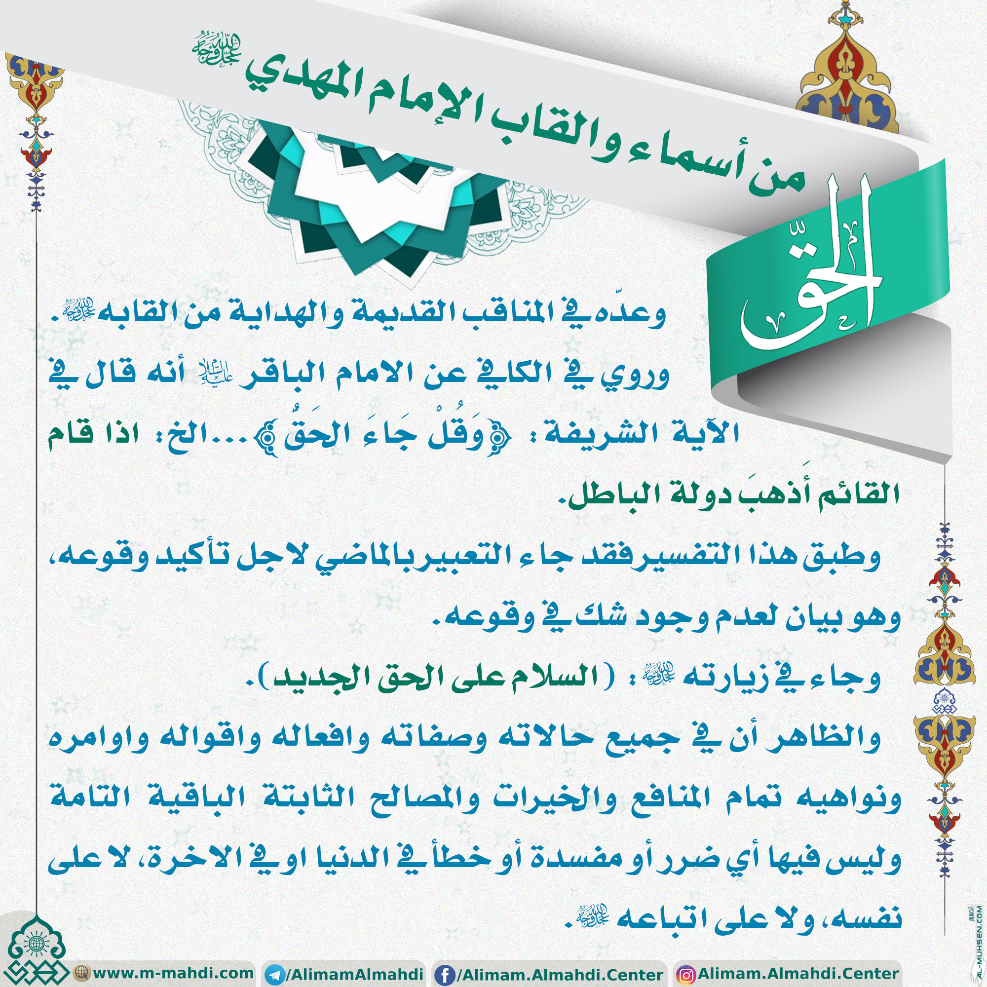 أسماء وألقاب الإمام المهدي (عجّل الله فرجه) - ٣