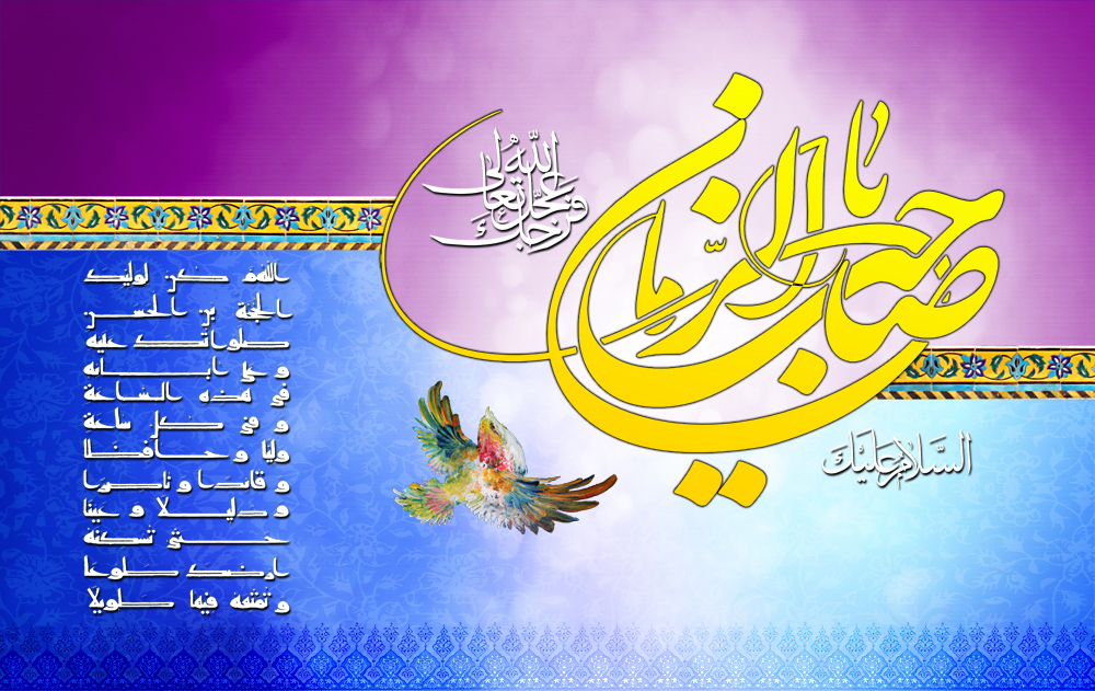 به نام خداوند بخشنده مهربان بار الها: ولی امرت امام زمان حجت بن الحسن را که درودهایت بر او وپدرانش باد در این هنگام وبرای همیشه سرپرست ونگهدار ورهبر ویاور وراهنما ونگاهبان باش تا گیتی را به فرمان او آوری وتا دیر زمان، بهره مندش گردانی | اَللّـهُمَّ کنْ لِوَلِیک الْحُجَّةِ بْنِ الْحَسَنِ صَلَواتُک عَلَیهِ وَعَلی آبائِه فی هذِهِ السَّاعَةِ وَفی کلِّ ساعَة وَلِیاً وَحافِظاً وَقائِداً وَناصِراً وَدَلیلاً وَعَیناً حَتّی تُسْکنَهُ اَرْضَک طَوْعاً وَتُمَتِّعَهُ فیها طَویلاً