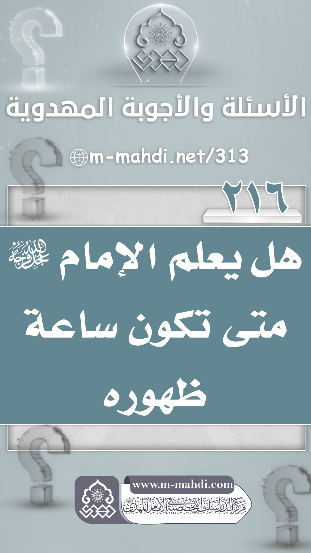 (٢١٦) هل يعلم الإمام (عجّل الله فرجه) متى تكون ساعة ظهوره