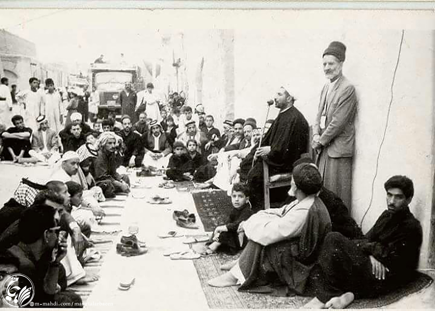 صورة نادرة لزيارة الاربعين ويظهر في الصورة مجلس عزاء في خان الحماد لموكب مشاة النجف الأشرف على الأقدام الى كربلاء المقدسة حيث كان المشرف على الموكب آنذاك الحاج عباس الكرماني