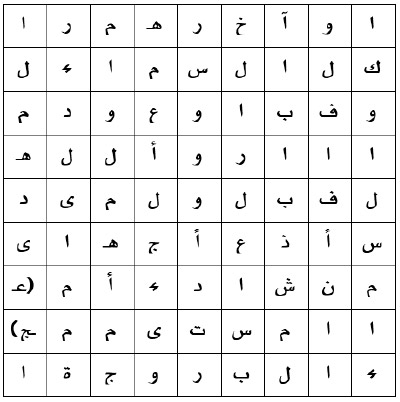 ظلّل على كلمات الآية المباركة والحديث الشريف واستخرج كلمة السرّ المكوَّنة من (٩) حروف وهي من علامات الظهور وتدلُّ على توقّف الفلك، قال رسول الله صلى الله عليه وآله وسلم حول هذه الآية:
