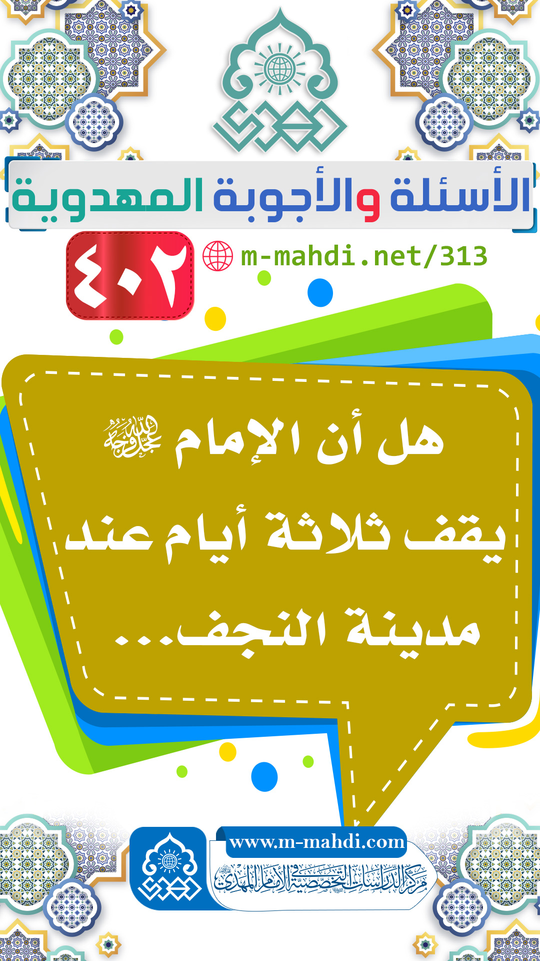 (٤٠٢) هل أن الإمام (عجّل الله فرجه) يقف ثلاثة أيام عند مدينة النجف...