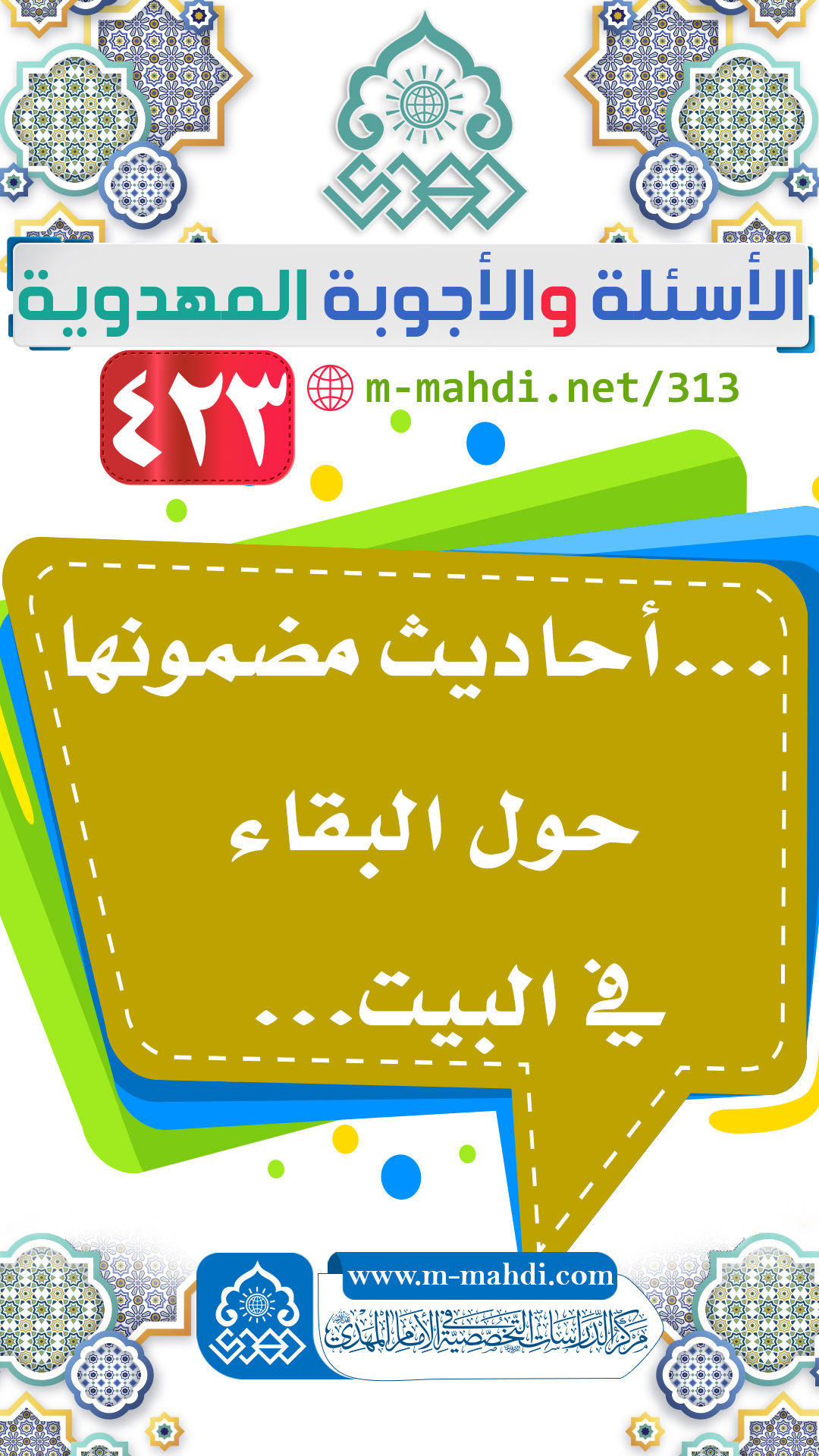 (٤٢٣) ... أحاديث مضمونها حول البقاء في البيت...