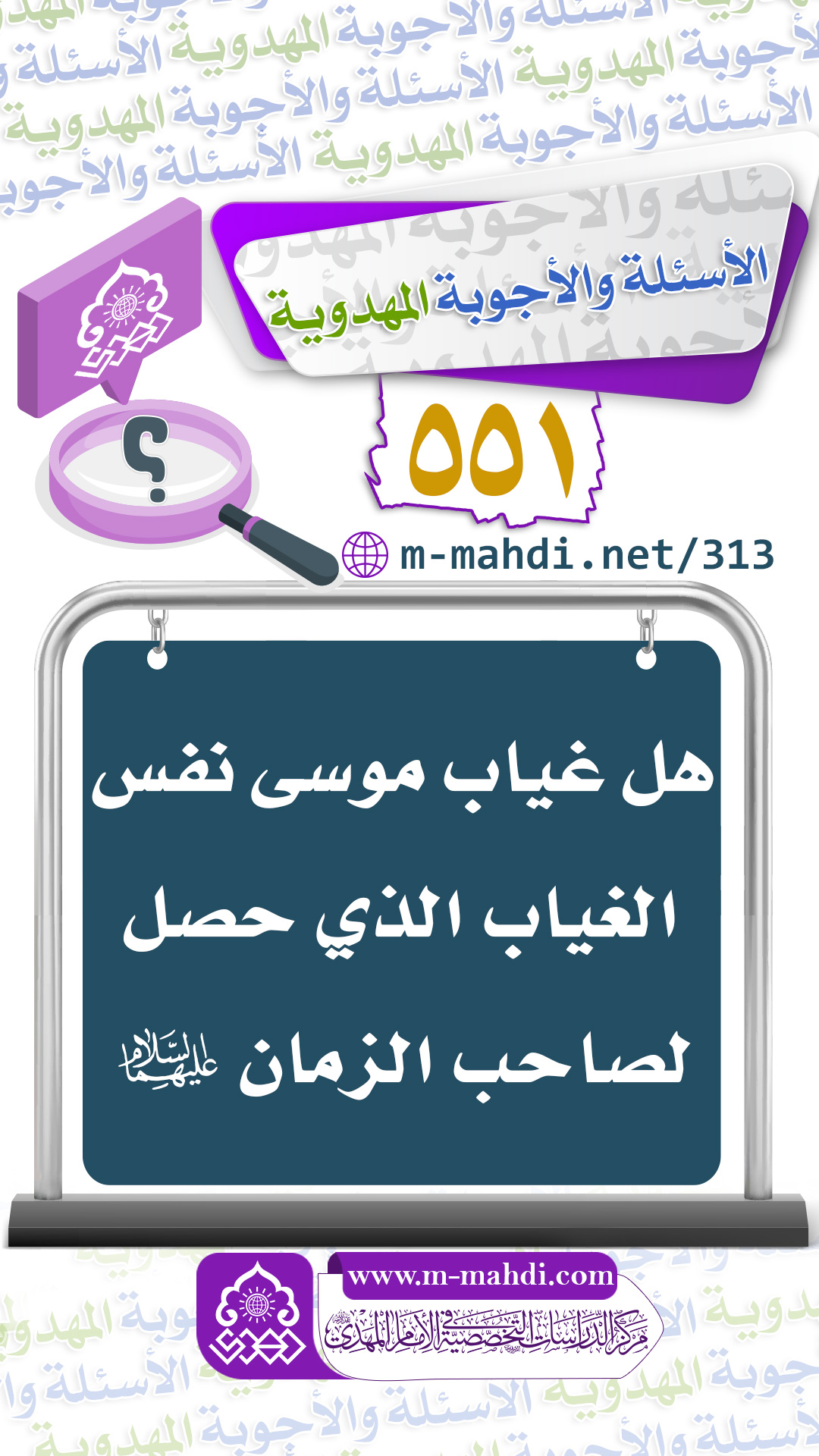 (٥٥١) هل غياب موسى نفس الغياب الذي حصل لصاحب الزمان (عليهما السلام)