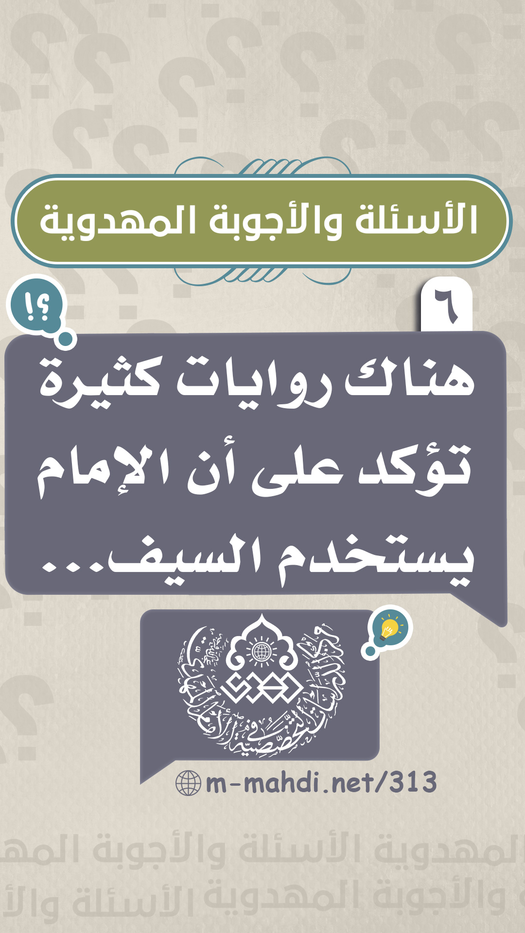 (٦) هناك روايات كثيرة تؤكد على أن الإمام يستخدم السيف...