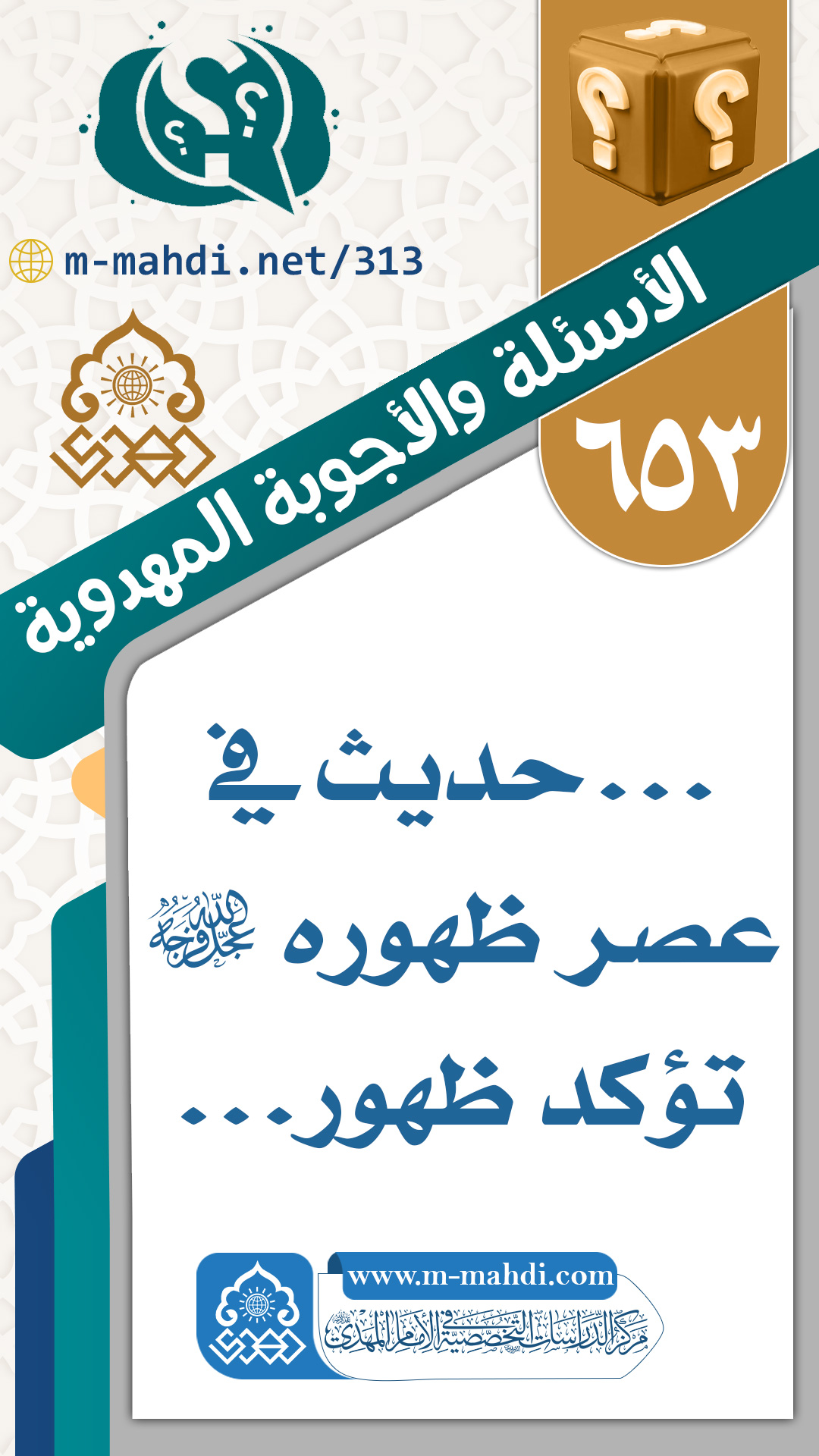 (٦٥٣) ... حديث في عصر ظهوره (عجّل الله فرجه) تؤكد ظهور...