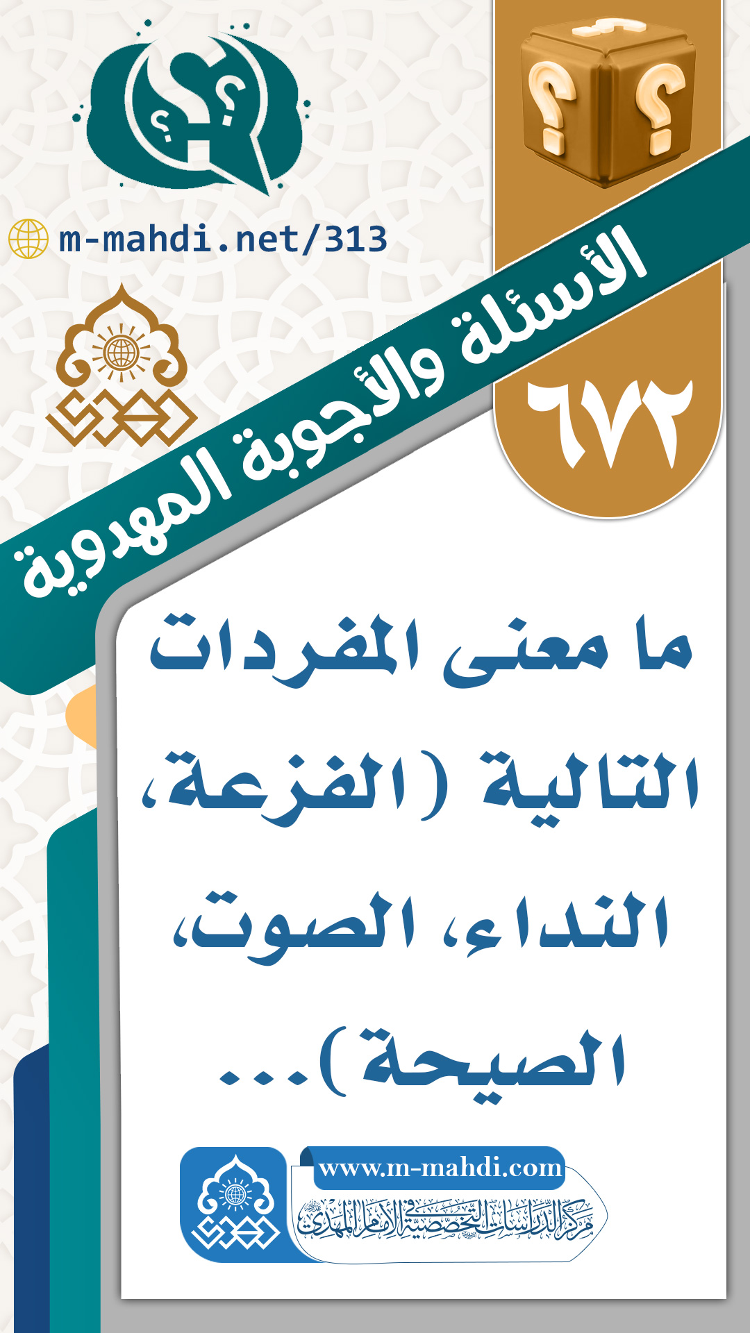 (٦٧٢) ما معنى المفردات التالية (الفزعة، النداء، الصوت، الصيحة)...