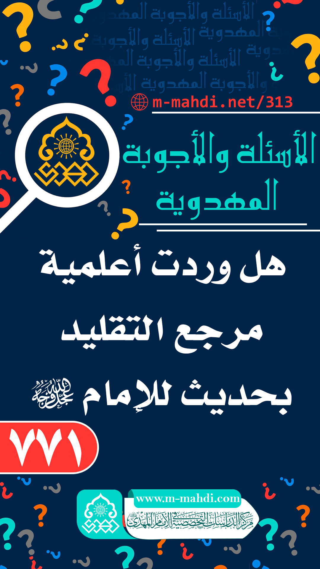 (٧٧١) هل وردت أعلمية مرجع التقليد بحديث للإمام الحجة (عجّل الله فرجه)