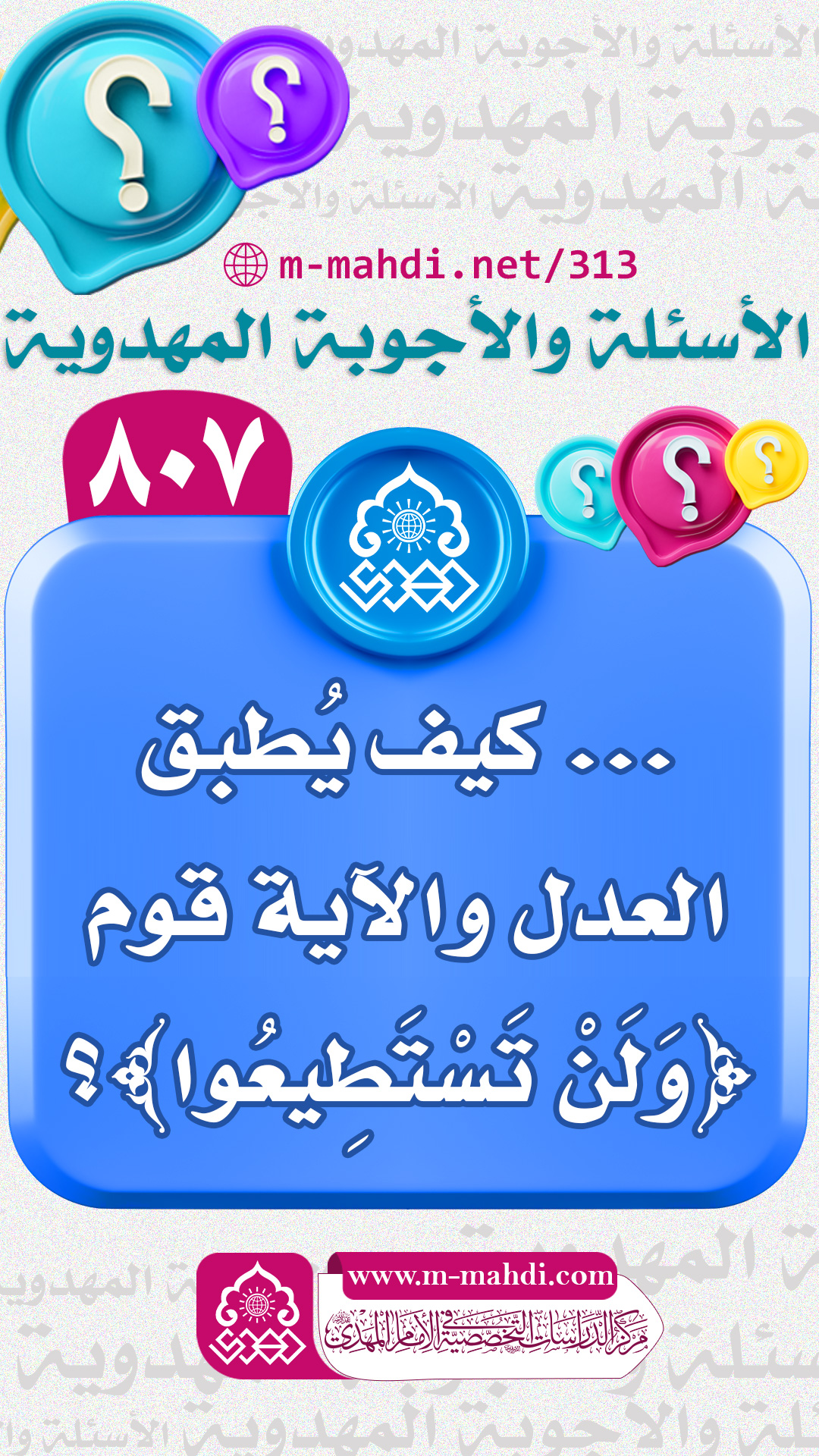 (٨٠٧) ... كيف يُطبق العدل والآية قوم ﴿وَلَنْ تَسْتَطِيعُوا﴾؟