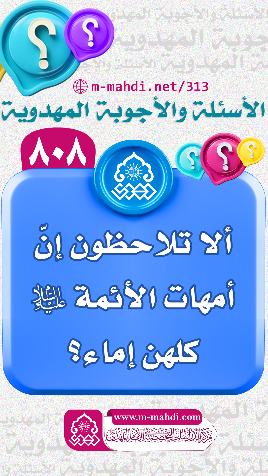 (٨٠٨) ألا تلاحظون إنّ أمهات الأئمة (عليهم السلام) كلهن إماء؟